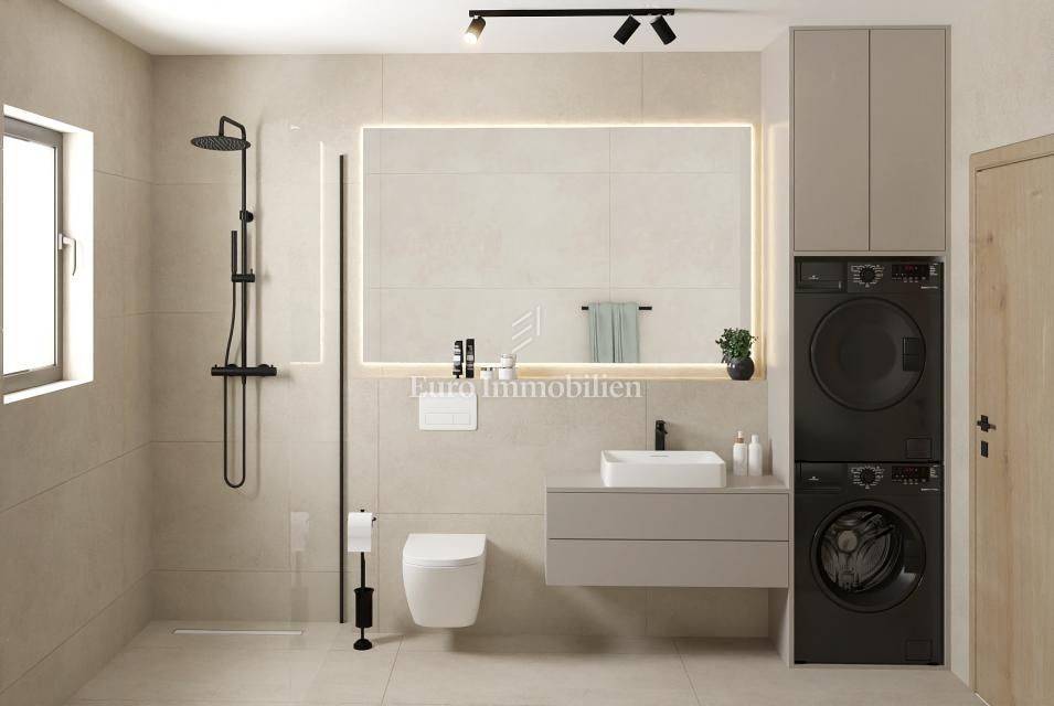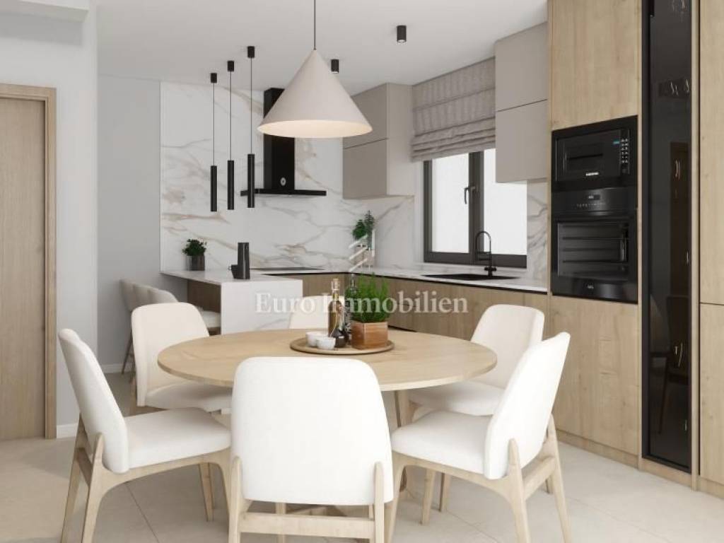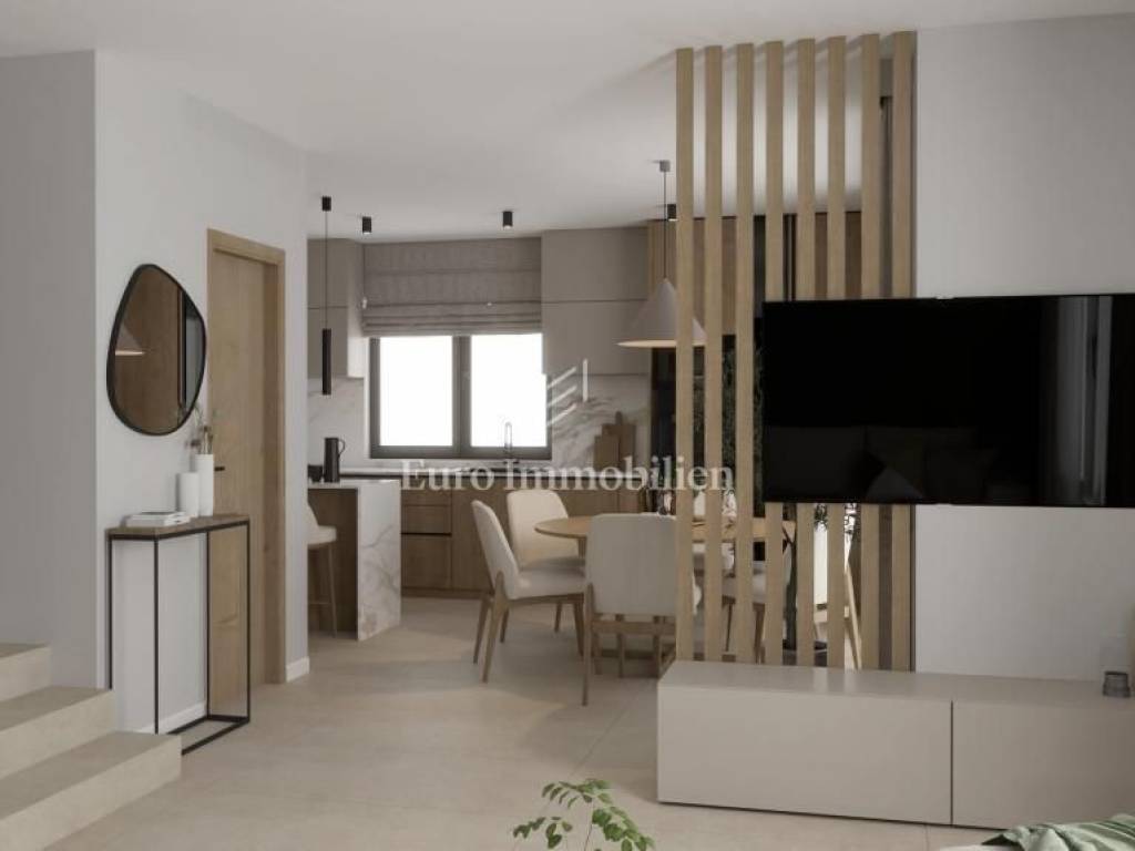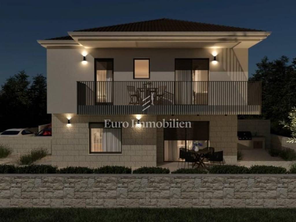 Kvalitetna gradnja i oprema: kameni detalji na fasadi i u okolišu, podno grijanje na vodu pokretano dizalicom topline Vaillant, inverter klima uređaji, bazen s elektrolizom i dizalicom topline, električno pokretane rolete.
