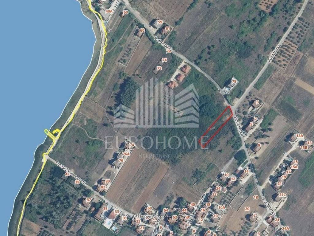 Zemljište je smješteno na atraktivnoj lokaciji, udaljeno oko 300 metara od mora, što ga čini idealnim za stambenu gradnju ili investiciju.