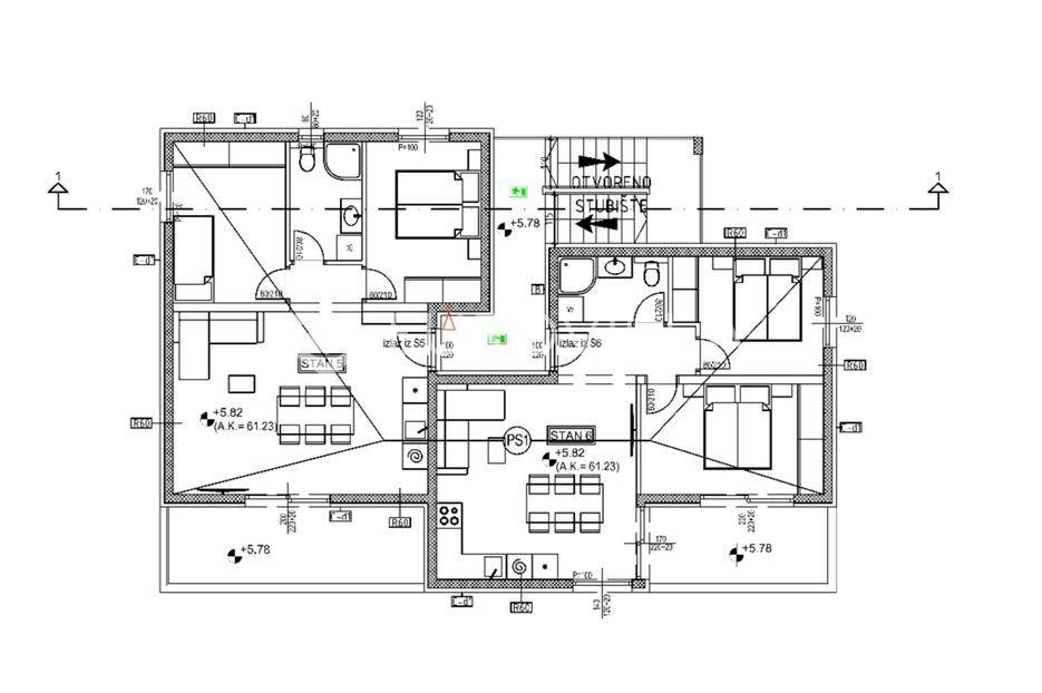 U neposrednoj blizini povijesnog grada Trogira, gradi se stambeni objekt sa 7 stanova južne orijentacije na pješačkoj udaljenosti od mora od cca 900 m. Zahvaljujući izoliranoj poziciji, lokacija objekta pruža izuzetan mir.Dvosoban stan S5 na drugom katu neto korisne površine 58,40 m2 sastoji se od ulaznog prostora, kuhinje, blagovaonice, dnevnog boravka, kupaonice, predsoblja, dvije spavaće sobe, i natkrivene terase površine od 10,80 m2 .Svi stanovi će biti opremljeni klima uređajima i podnim grijanjem u kupaonicama. Podne obloge će biti od keramičkih pločica. Na prozorima i vratima će biti postavljena PVC stolarija, troslojna stakla a vanjska termo izolacija će biti od 8 cm stiropora.U tijeku izgradnje postoji mogućnost individualnih dogovora oko uređenja interijera.Svaki apartman ima na raspolaganju 1 parking mjesto uključeno u cijenu.Ukupna neto korisna površina stana sa svim pripadcima iznosi 61,52 m2.Očekivani početak radova je kraj 2025 godine a useljenje krajem 2027 godine.Investitor je fizička osoba a način plaćanja je: rezervacija min 5.000 eura / 30 % prilikom potpisa predugovora / 30 % nakon završetka konstrukcijskih radova / 20 % nakon završetka fasade / 15 % nakon završetka unutrašnjosti / 5 % nakon ishođenja uporabne dozvole.Dodatne informacije - udaljenosti od važnijih lokacija:Plaža: 900 m / Trogir: 1400 m / zračna luka: 4 km / Split: 30 kmKupovina: 500 m / restoran: 800 m / ljekarna: 500 m / banka: 500 mZa sva dodatna pitanja stojim na raspolaganju.