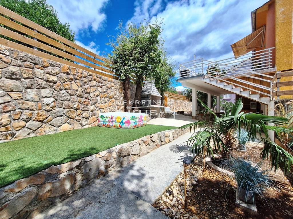 Dodatne pogodnosti uključuju vlastito dvorište, što pruža dodatan prostor za opuštanje. Grijanje je na struju, a za udobnost tijekom toplijih mjeseci ugrađena je klima. Osiguran je i parkirališni prostor.
