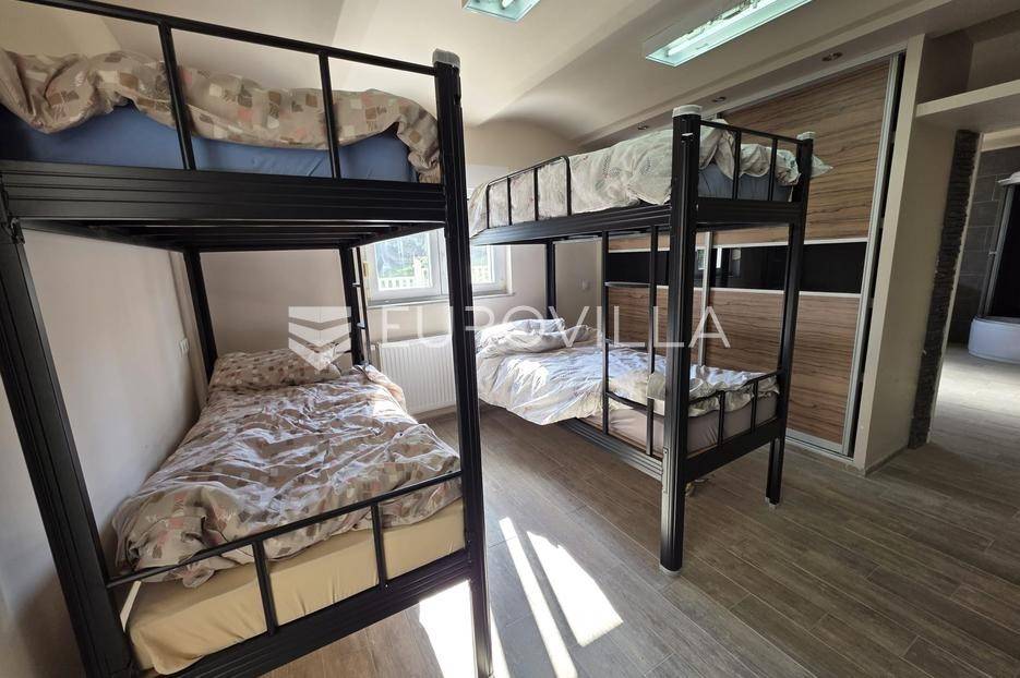 Zelina, Hrnjanec, prodaje se stambeno-poslovni objekat od 590 m2 koji se sastoji ood povezanih objekata, prednje kuće, duple velike garaže te dodatnog objekta na zemljištu od 1925 m2.Prednja kuća se sastoji od tri etaže: suteren u kojem su dvije velike spavaonice, kuhinja, kupaonica i vešeraj; visoko prizemlje u kojem su dvije sobe, kuhinja, hodnik i kupaonica te neizrađeno potkrovlje. U produžetku se nalaze dvije velike garaže, visine 4 m na kojem je terasa sa pečenjarom. Pored toga je dodatna kuća na dvije etaže koja trenutno služi kao skladišni prostor.Objekat ima poslovni potencijal te se trenutno koristi kao smještaj za 20 radnika.Kuća se nalazi manje od 10 minuta vožnje do Zeline i Sesveta te je povezana autobusnim linijama sa sesvetama i Zagrebom.Za ostala pitanja stojimo Vam na raspolaganju.