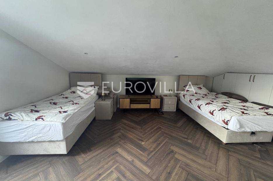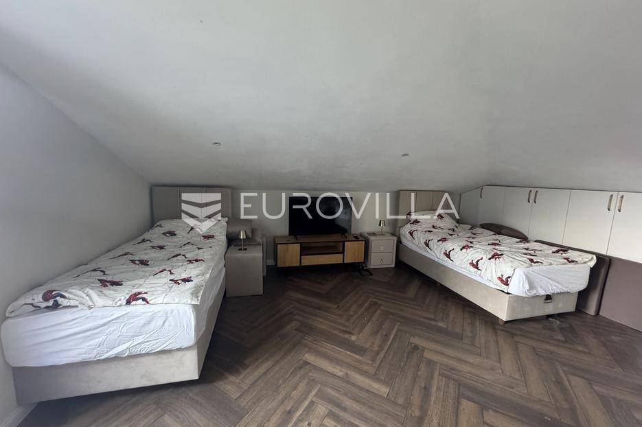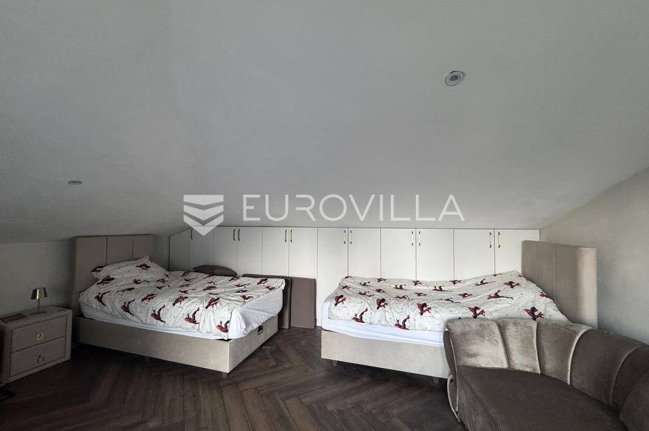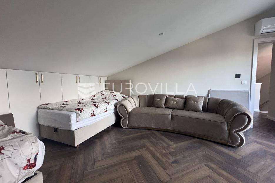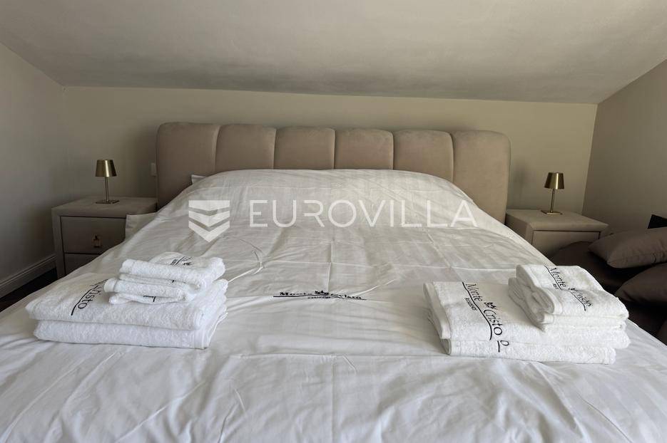 Istra, Rovinj, moderan i luksuzno uređen dvo etažni stan 130m2 s četiri spavaće sobe na 2. katu do 1.6, isključivo kratkoročni najam.Stan se sastoji od ulaznog dijela koji vodi u open space dnevni boravak, blagovaonu i kuhinju s izlazom na natkrivenu terasu, master spavaću sobu s ensuite kupaonom, dodatnom sobom i gostinjskom kupaonom, ostavom/vešerajem te na drugoj etaži još dvije spavaće sobe, dodatna kupaona te krovna terasa.Stan je opremljen sa svim kućanskim aparatima. U stanu je instalirana smart home brava za ulazak u stan.Stan sadrži podno grijanje te su sve prostorije klimatizirane.Stanu pripada parkirno mjesto.Isključivo kratkoročni najam.Postoji opcija najma i drugih stanova u zgradi kao i kupnja.Za više informacija stojimo na raspolaganju
