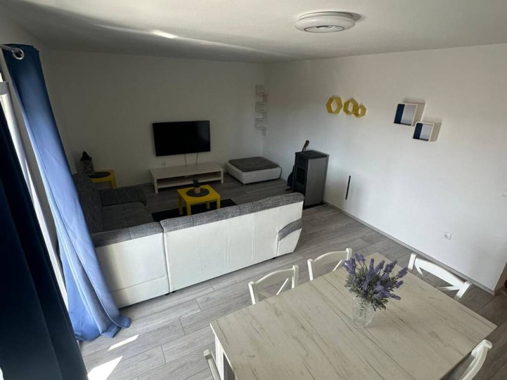 Stan se nalazi na drugom katu stambenog objekta. Etažiran je, ima vlastiti ulaz sa zajedničkog stepeništa te vlastite priključke. Orjentiran je južno te se s terase pruža pogled na more. Stan je komodan, prostran i ispunjen sunčevom svijetlosti. Stanu pripada i parkirno mjesto.