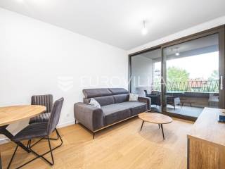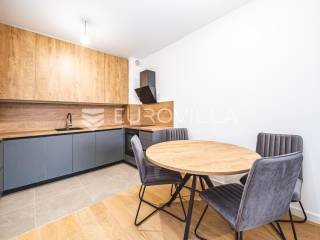 Zagreb, Donje Svetice moderno uređen dvosoban stan površine 48 m2, smješten na 1. katu novogradnje s liftom.Stan se sastoji od ulaznog hodnika, dnevnog boravka s blagovaonicom i kuhinjom s izlazom na loggiu, spavaće sobe i kupaonice.Stanu pripada i garažno parkirno mjesto.Klimatiziran, aluminijska vanjska stolarija i trostruko IZO staklo, energetski certifikat A+ što podrazumijeva niske režije, električne rolete, protuprovalna vrata...Stan se nalazi u mirnom dijelu Donjih Svetica, s izvrsnom prometnom povezanošću prema centru grada i ostatku Zagreba, blizina parka Maksimir. U neposrednoj blizini nalaze se tramvajska stanica, trgovine, škole, vrtići i svi sadržaji potrebni za svakodnevni život.