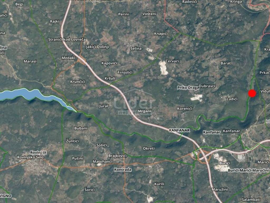 - Zemljište od 13.270 m2 se nalazi blizu sela Vidulini, Kanfanar. Naime od Vidulina, bijelim putem oko 3,5 km zavojitom cestom dolazimo do parcele. Taj dio je dosta nenaseljen, te je uzdignut nad limskom valom, na njenom suhom kraju.