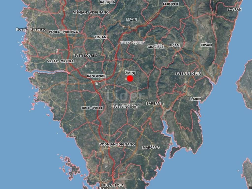-Zemljište 3 km udaljeno od Žminja od 13.207 m2 se nalazi tik uz glavnu prometnicu Žminj – Barban. Zemljište je prema cesti širine 150 metara a dubine oko 130 metara, okruglastog oblika. Zemljište se nalazi 150 metara od naseljenog mjesta.