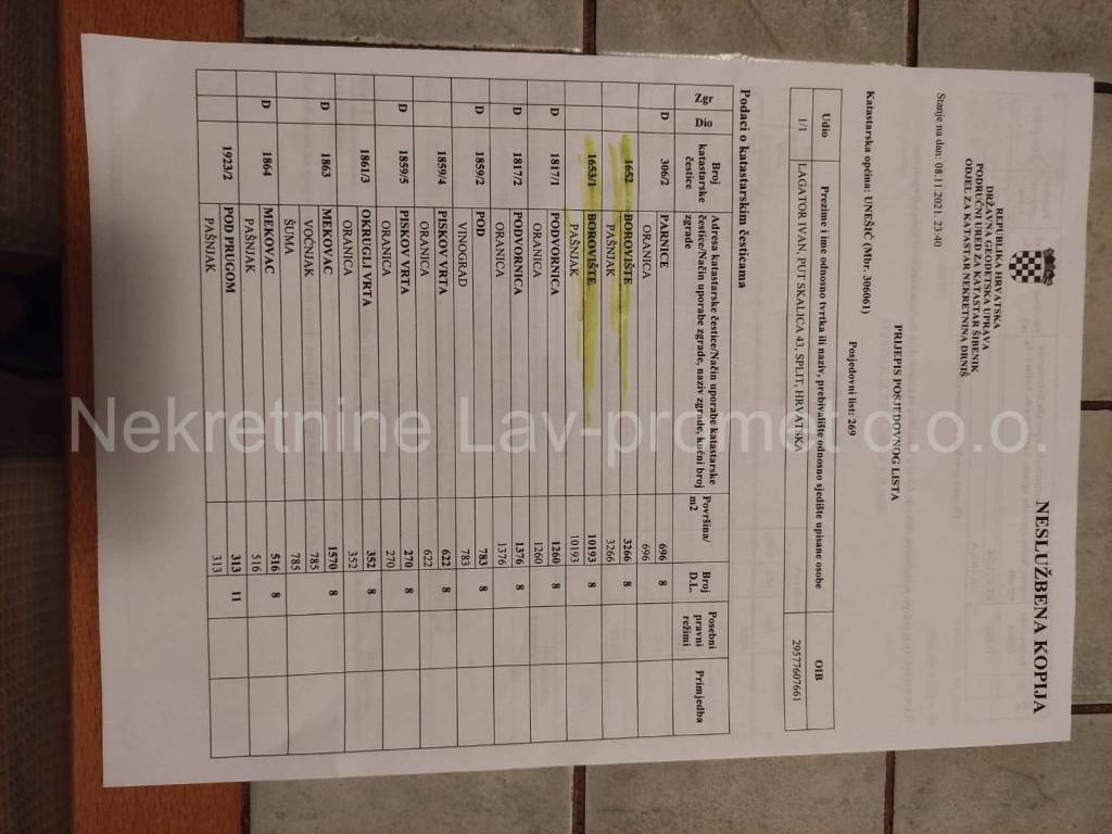 Tekst:Mjesto UNEŠIĆ ,č. zemlje do škole,cca 10.000m2,višestruka namjena,odlična lokacija,infrastrukturno osigurana.Cijena10 eura/m2.