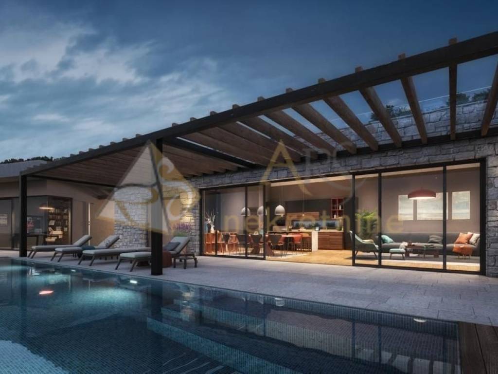 Moderna vila s tlocrtom od 266 m na parceli od 1.166 m nadahnjuje infinity bazenom (37 m2), zadivljujućim panoramskim pogledom na more i otoke.