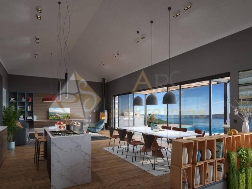 Interijer je savršena simbioza luksuza i udobnosti. Visine prostorija do 4,5 metara, panoramsko ostakljenje i vrhunska oprema plus sustav pametne kuće i optički internet visokih performansi ne ostavljaju ništa za poželjeti više.