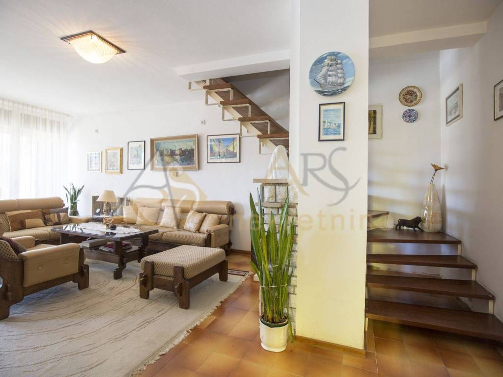 Kuća se prostire na tri etaže: suteren (30,71 m), prizemlje (65 m) i kat (59,16 m). Izgrađena kao dvojna kuća s vlastitim pristupom. Uz cestu je osigurano parkirno mjesto za jedno vozilo, a na raspolaganju je i garaža.