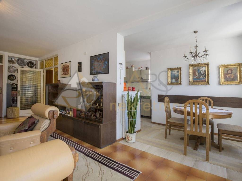 Prizemlje se odlikuje prostranom organizacijom prostora. Obuhvaća malu spavaću sobu, kuhinju s blagovaonicom, kupaonicu i dnevni boravak s izlazom na veliku terasu, koja pruža predivan pogled na more.