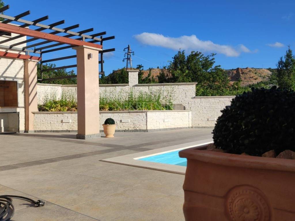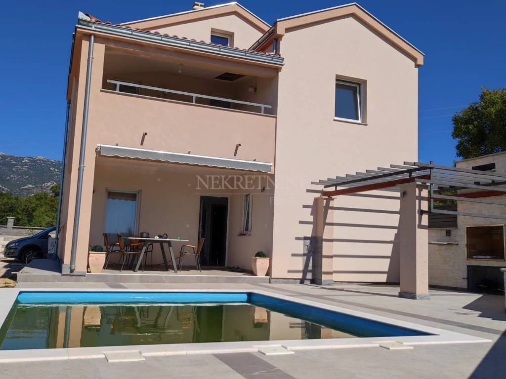 Na mirnoj lokaciji u Rovanjskoj, na kraju slijepe ulice i bez mogućnosti gradnje na parcelama bočno i iza same kuće, u ponudi je samostojeća kuća s bazenom. Kuća se sastoji od prizemlja, kata i potkrovlja. Prizemlje je namješteno dok su kat i potkrovlje uređeno ali ne namješteno (osim kupaonice). Kuća ima priključak struje i vode za prizemlje i kat tako da ista može funkcionirati kao jedinstvena kuća ili kao dva zasebna stana. Kuća ima toplinsku izolaciju 10cm, panoramski pogled sa tri strane. Bazen - polipropilen visoke otpornosti 5x5 sa obrubom od bijelog prirodnog kamena. U sklopu bazena podzemna strojarnica, uz bazen se nalazi roštilj sa pergolom i tušem. Kuća je ograđena, ograda oko kuće armirano betonska 25 cm, obložena umjetnim kamenom sa željeznim elementima koji su pocinčani i pošpricani antracitom. Kuća je idealna za obiteljski odmor kao i investicija za turizam.