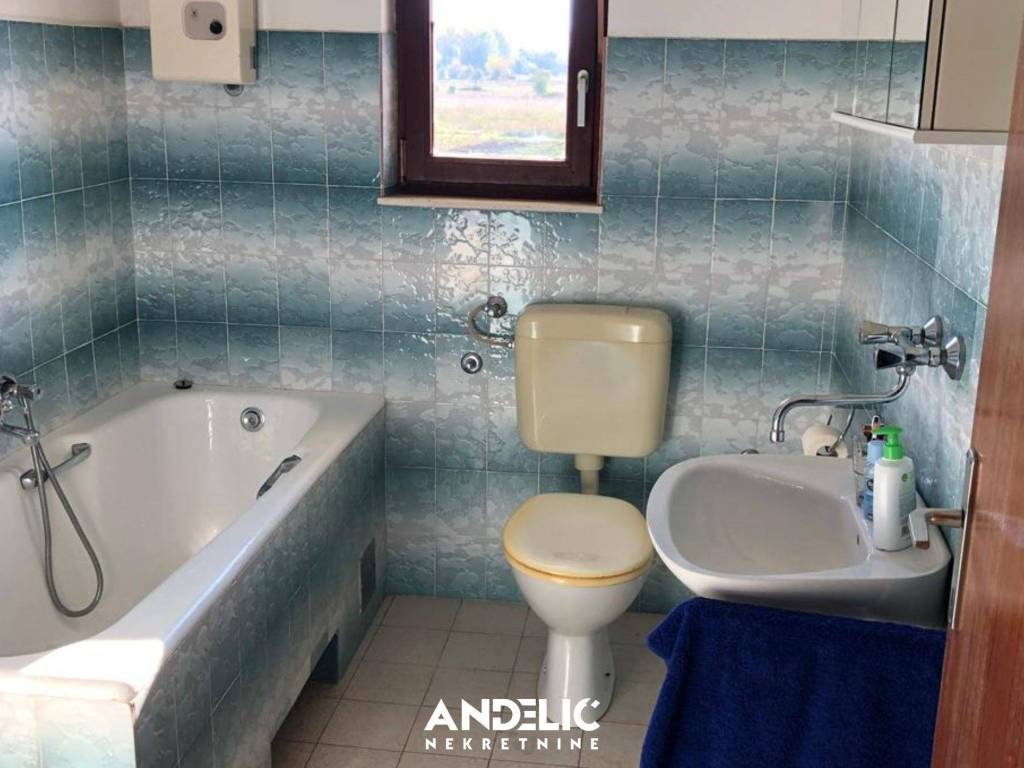 Samostojeća kuća sastoji se od prizemlja i prvog kata sa kosim krovom te predivnom okućnicom.