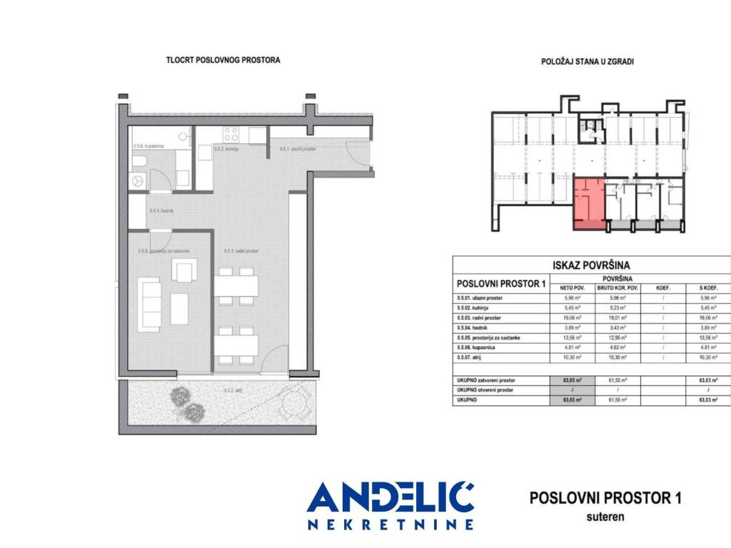 Novoopremljeni poslovni prostor u novogradnji veličine63 M2 nalazi se nadobroj lokacijiu suterenustambeno poslovne zgrade.