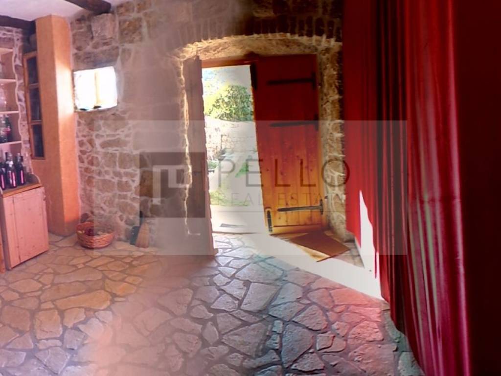 Unutrašnjost dekorirana kamenom, drvom i ciglom. Ispred kuće je dvorište ograđeno kamenim zidom, te vrt s dalmatinskim voćkama.
