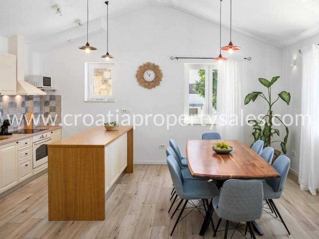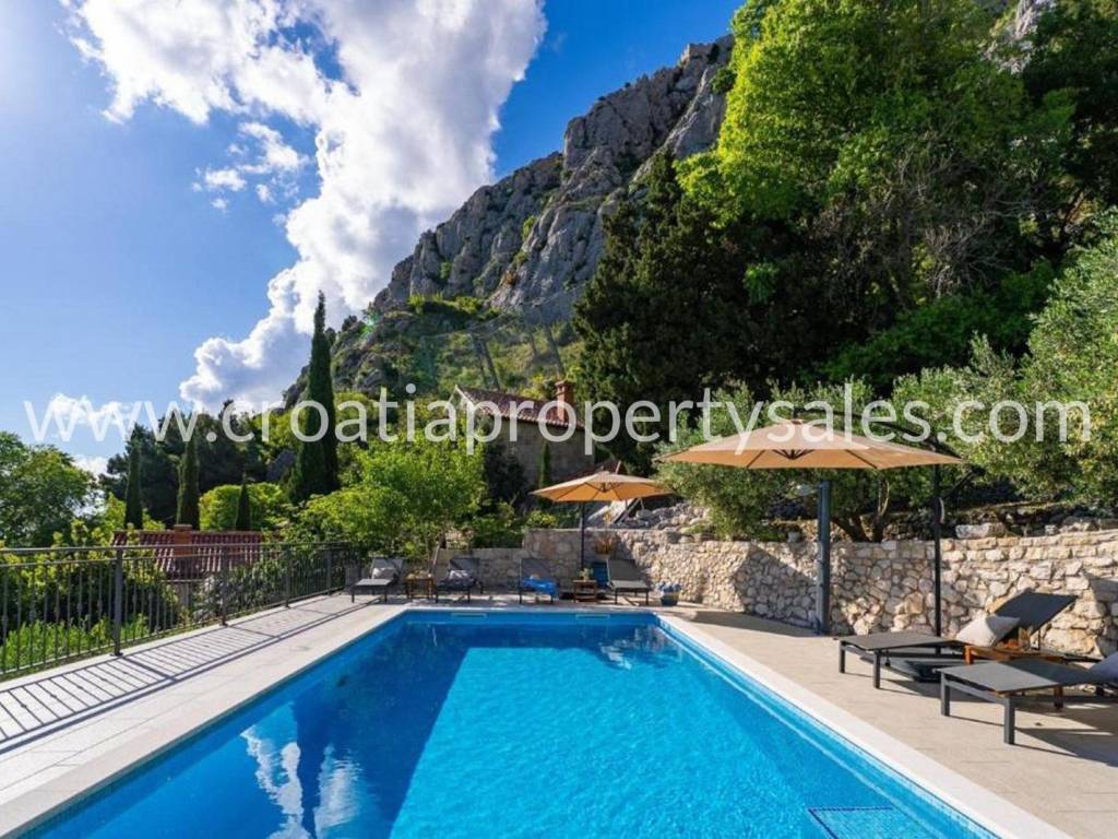 Kamena vila s bazenom i pogledom na more.U mirnom i slikovitom naselju iznad Omiša smještena je ova prekrasna kamena vila koja savršeno spaja tradicionalni dalmatinski šarm i suvremenu udobnost.Okružena zelenilom i mediteranskim vrtom vila pruža potpunu privatnost i mir dok s njezine terase i bazena puca očaravajući pogled na more i otoke.Kuća se prostire na dvije etaže. U prizemlju se nalaze 3 spavaće sobe i dvije elegantno uređene kupaonice idealne za udoban boravak.Na katu se nalazi prostran dnevni boravak s blagovaonicom i moderno opremljenom kuhinjom kao i dodatna spavaća soba i kupaonica.Unutrašnjost vile odiše toplinom i elegancijom, kameni zidovi, drveni detalji i pažljivo odabrani namještaj stvaraju autentičan dalmatinski ugođaj dok suvremena oprema i vrhunski materijali osiguravaju visoku razinu udobnosti.Vanjski prostor je jednako dojmljiv, prostrana terasa s bazenom sunčalištem i prostorom za opuštanje savršeno je mjesto za uživanje u suncu dok mediteranski vrt ispunjen maslinama, lavandom i ružmarinom pruža potpuni mir.Ova vila predstavlja savršen spoj tradicije i modernog luksuza, idealna kao obiteljska rezidencija ili investicija u turistički najam s izvrsnim potencijalom.