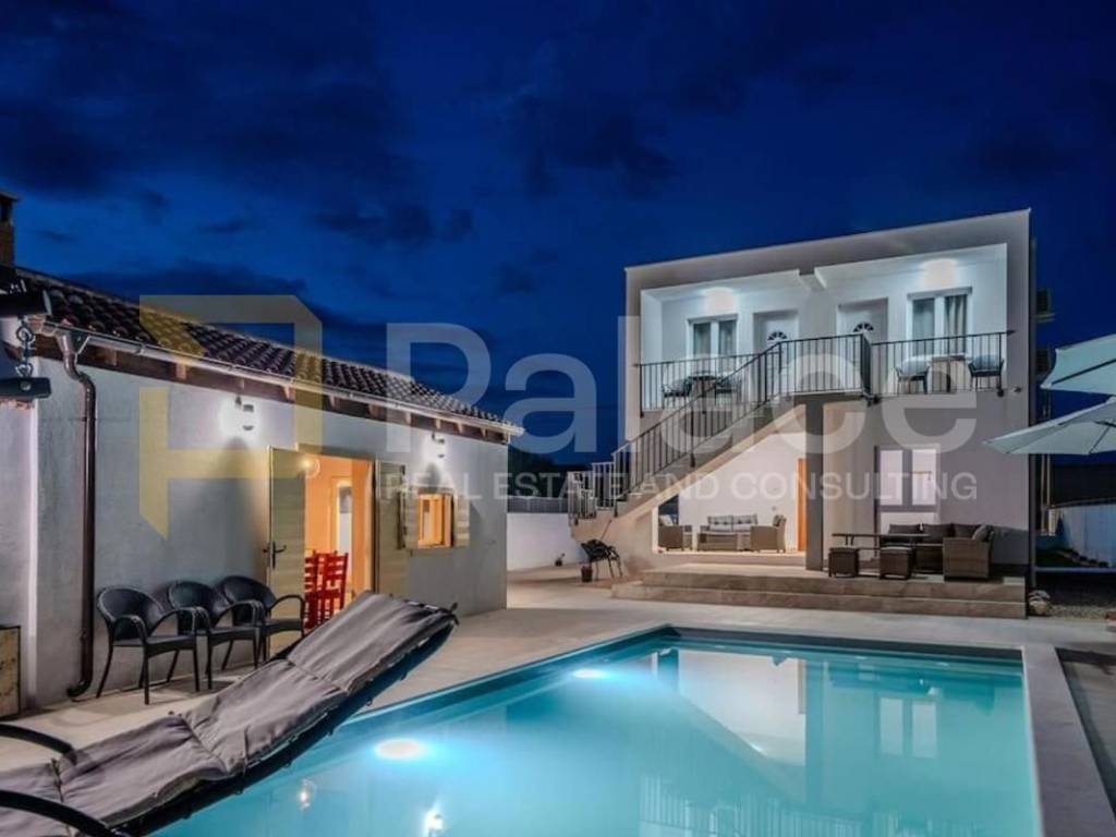Uz samu kuću nalazi se konoba uređena za uživanje i druženje, s dodatnom kuhinjom koja omogućuje pripremu obroka u ugodnom ambijentu. Na prostranom i uređenom dvorištu smješten je bazen okružen ležaljkama, idealan za opuštanje tijekom ljetnih dana, a u planu je i izgradnja košarkaškog terena koja će dodatno obogatiti ponudu ove nekretnine.