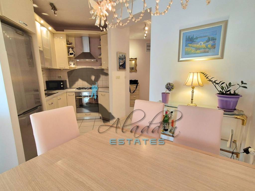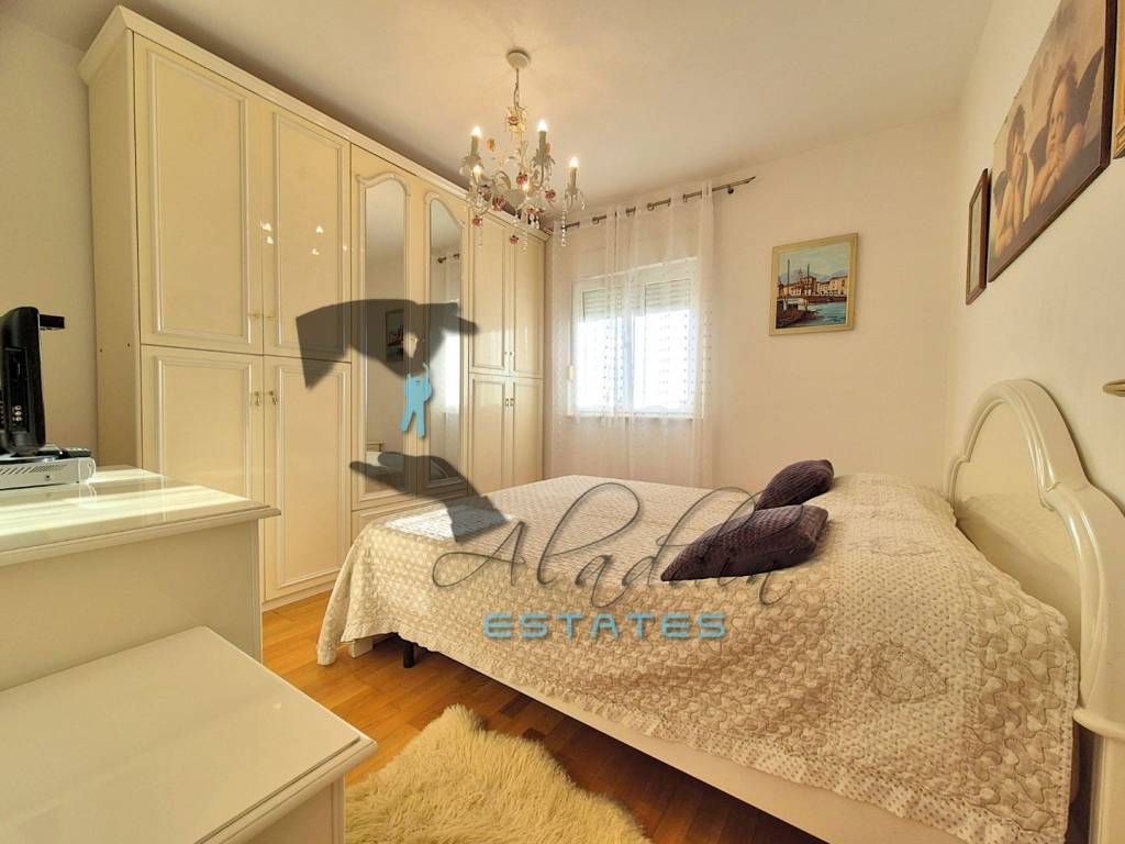Stan je izvrsno opremljen i iznimno ukusno namješten. Za ugodan se ambijent brine klima uređaj, tu je i 5G bežični internet (uskoro s mogućnošću optičkog priključka), satelitska i zemaljska televizija, parlafon, perilica rublja, izuzetna PVC stolarija s dvoslojnim izo-staklima, roletama i zavjesama na svim prozorima i balkonskim vratima, prvoklasni parketi u svim sobama te elegantne keramičke pločice u ostalim prostorijama. Gradnja je vrlo kvalitetna, prvorazredne hidro i termo izolacije (stiropor) i odrađena da traje. Kuhinja je u potpunosti funkcionalna, s kuhalima na plin i struju, pećnicom, napom, hladnjakom sa zamrzivačem, mikrovalnom pećnicom te manjim zasebnim bojlerom samo za kuhinju. Kupaonica je također u cijelosti opremljena, uključujući primarni bojler i kombiniranu kadu s tuš kabinom. Rezidencija je u besprijekornom je stanju, osmišljena i izvedena baš po mjeri čovjeka, vrlo održavana i očuvana, bez i najmanjih nedostataka. Posjeduje i gostinjski WC, dok je spavaći dio stana značajno odvojen od boravišnog, što omogućuje mir i zadovoljstvo na obje strane. Orijentiran je na jugozapadnu sunčanu stranu s malom potrebom za grijanjem van sezone, te je priključen na kanalizacijsku mrežu.