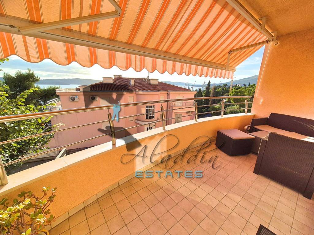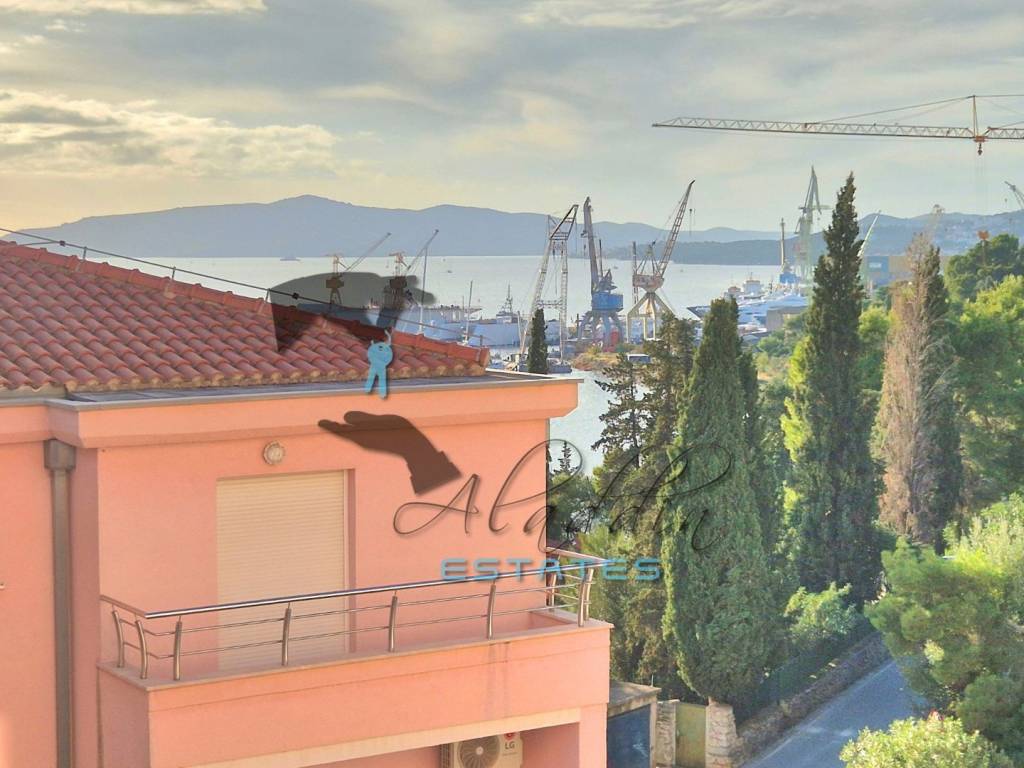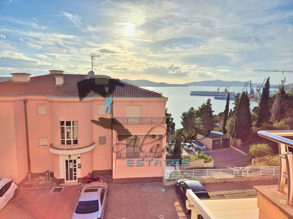 Odličan komforan dvosobni stan u visokom prizemlju stambene zgrade u Trogiru s lijepim pogledom na more. Sastoji se od vrlo udobnog dnevnog boravka kombiniranog s blagovaonicom, kuhinje, dvije poveće spavaće sobe, kupaonice, WC-a, hodnika i predsoblja. S vanjske se strane proteže vrlo primamljiva i prostrana lođa koja obuhvaća i ostavu. Parkirna mjesta uz zgradu nisu etažirana već su ostavljena stanarima na njihovo korištenje.