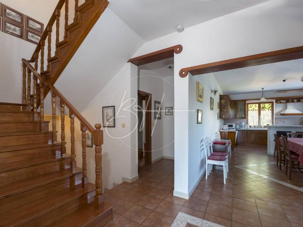 U dvorištu se nalazi bazen površine 24 m² sa sunčalištem i roštiljem – savršeno mjesto za opuštanje i druženje. Okružena prirodom, kuća je zaklonjena od pogleda, što osigurava potpunu diskreciju i mir.