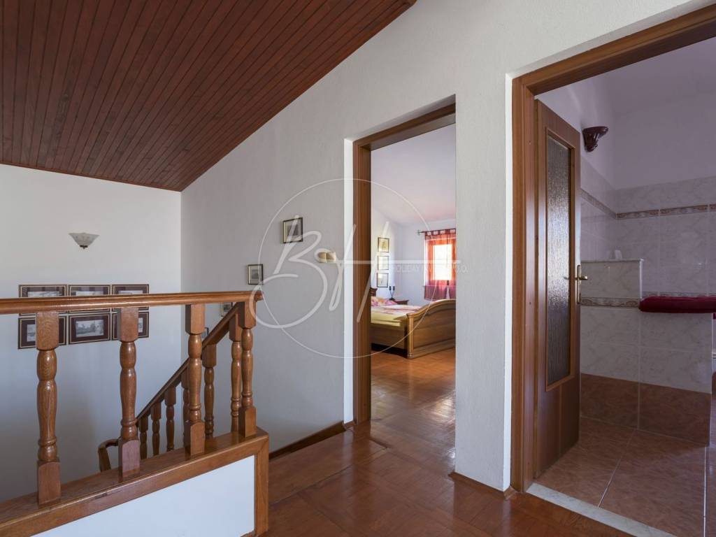 Na katu se nalaze tri spavaće sobe, kupaonica te dvije terase, od kojih jedna pruža predivan pogled na more i okolno zelenilo.