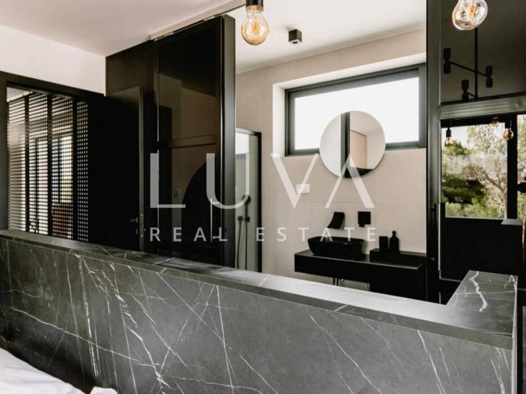 U prizemlju se nalazi potpuno opremljena moderna kuhinja na koju se nastavlja dnevni boravak, a okruženi su velikim staklenim stijenama kroz koje se izlazi na vanjski dio gdje se nalazi bazen. Ova luksuzna kuća ima 4 spavaće sobe s vlastitim kupaonicama, a osim toga ima i saunu.