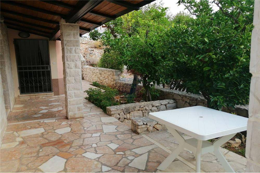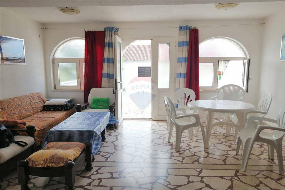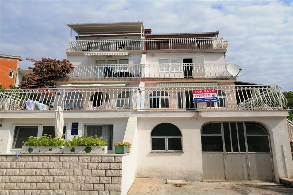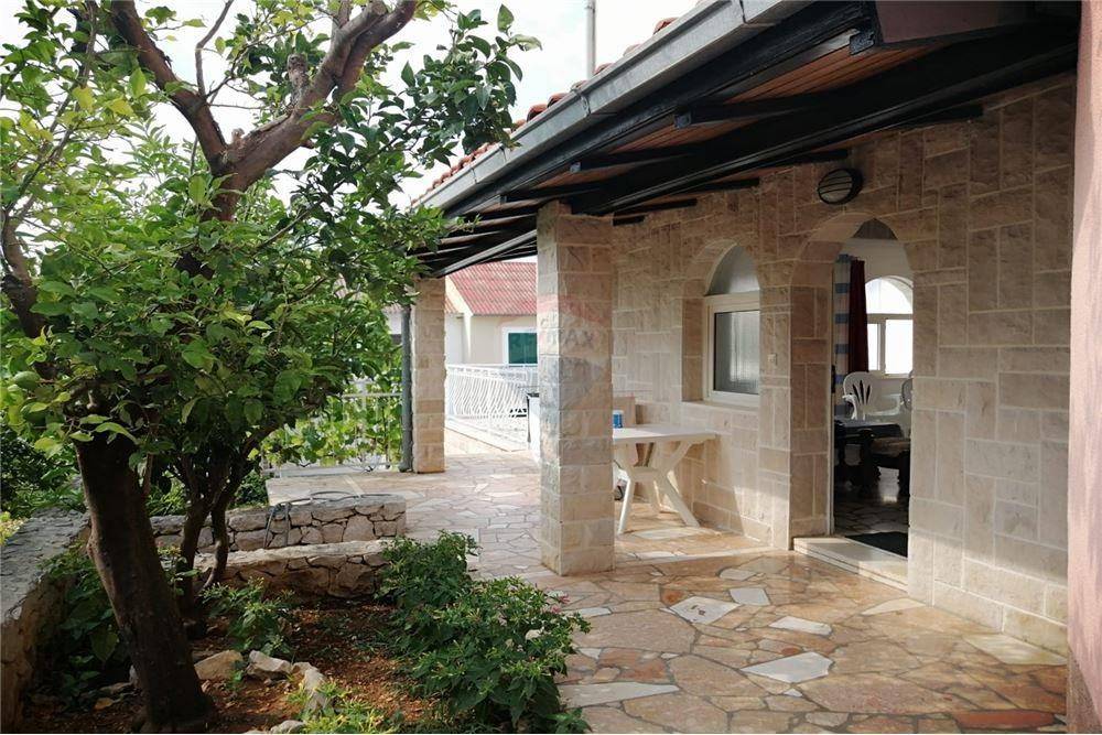 Na prodaju je dvojna kućasmještena u mirnoj ulici sa odličnim pogledom na more i na udaljenosti od 80 m od mora.