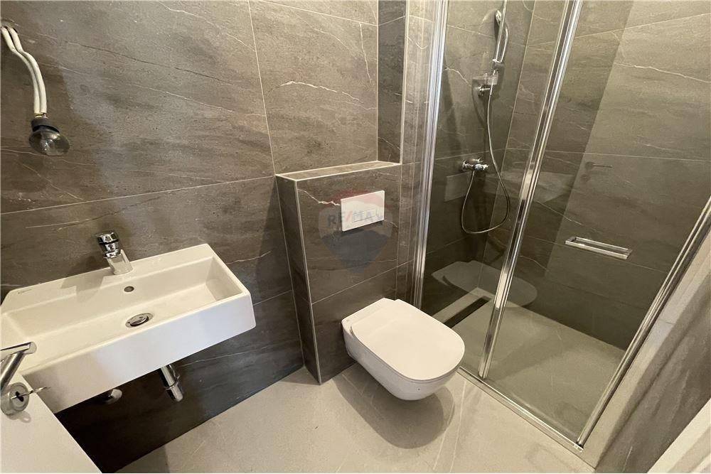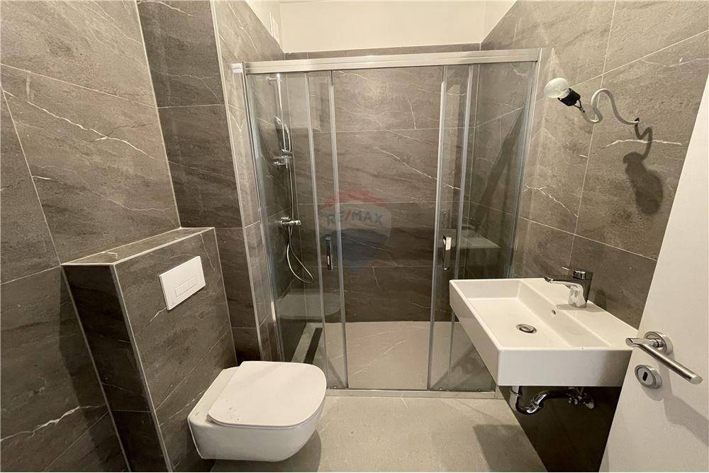 Podovi i zidovi kupaonica i WC -keramičke pločice, sobe i dnevni boravak - hrastov troslojni parket. Unutarnja vrata su bijela s magnetnim bravama. Oprema u kupaonici: konzolna WC školjka od keramike s ugradbenim vodokotlićem, umivaonik, walk-in tuš, staklena pregrada, bojler 50 l, podno grijanje.