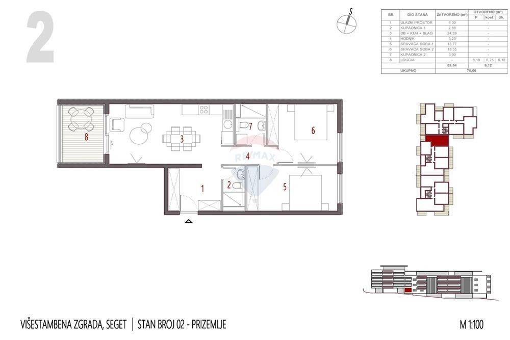 Stan (77.7 m2)oznakeS2u prizemljuzgrade