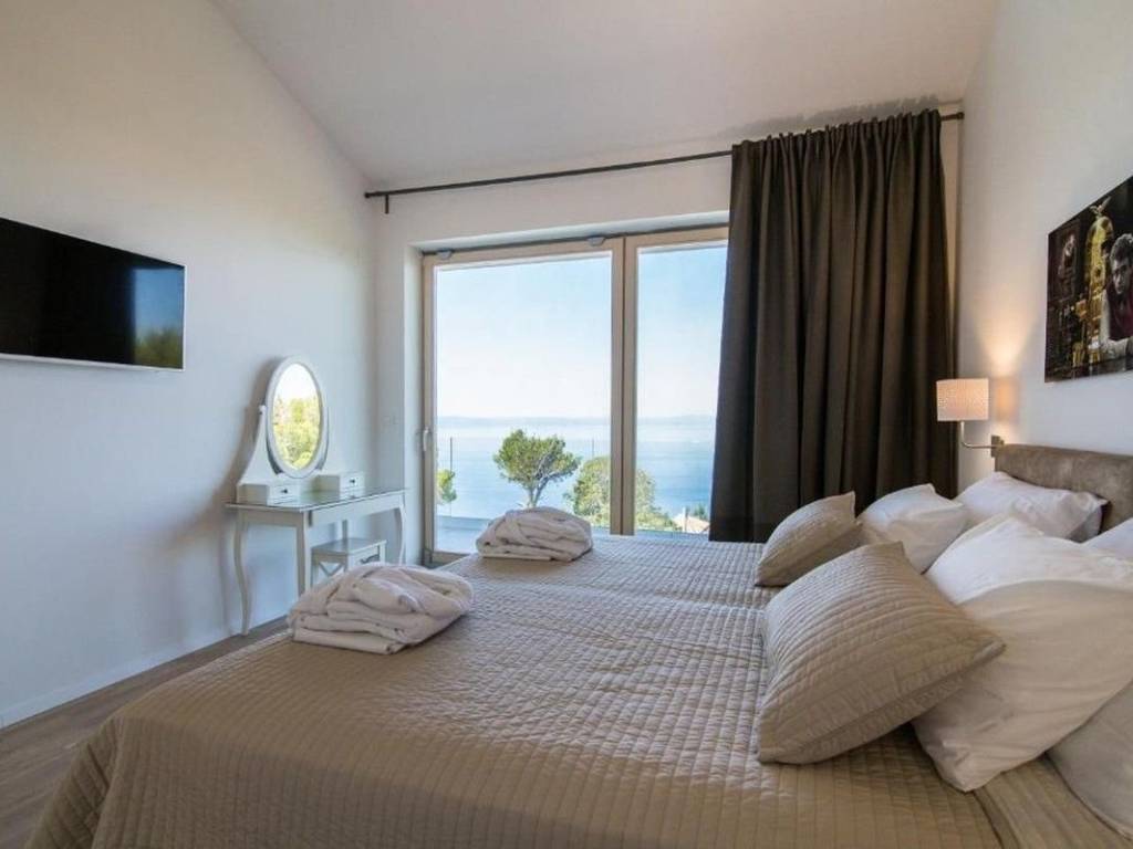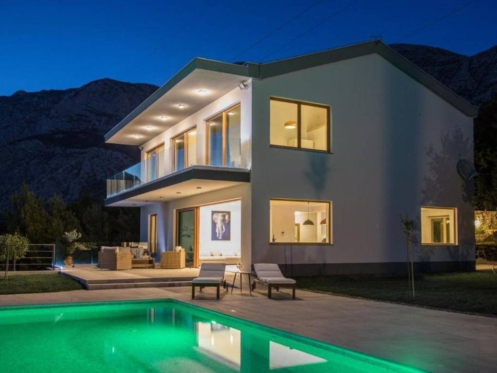 Prekrasna vila smještena u oazi mira na Makarskoj rivijeri, s jedinstvenim i pomno osmišljenim uređenjem. Vila se prostire na 330 m2 stambenog prostora, okružena prostranom okućnicom koja uključuje bazen, dječje igralište te ugodan lounge prostor. Ova nekretnina nudi izvanredan, neometan pogled na more i otoke, stvarajući savršenu harmoniju s prirodom. Vila se proteže na dvije etaže. Na prvoj etaži nalazi se prostrani dnevni boravak s izlazom na terasu otvorenog koncepta, moderno opremljena kuhinja, jedna spavaća soba s pripadajućom kupaonicom te mali gostinjski WC. Na drugoj etaži nalaze se tri luksuzno uređene spavaće sobe, svaka s vlastitom kupaonicom, dok iz svake prostorije pruža se očaravajući pogled na more. Nekretnina je kategorizirana s 5 zvjezdica te predstavlja odličnu priliku kako za obiteljski život, tako i kao investicija u turizam. Uz vilu dolazi garaža za dva automobila, a ispred nje postoji dodatni prostor za parkiranje do četiri vozila.