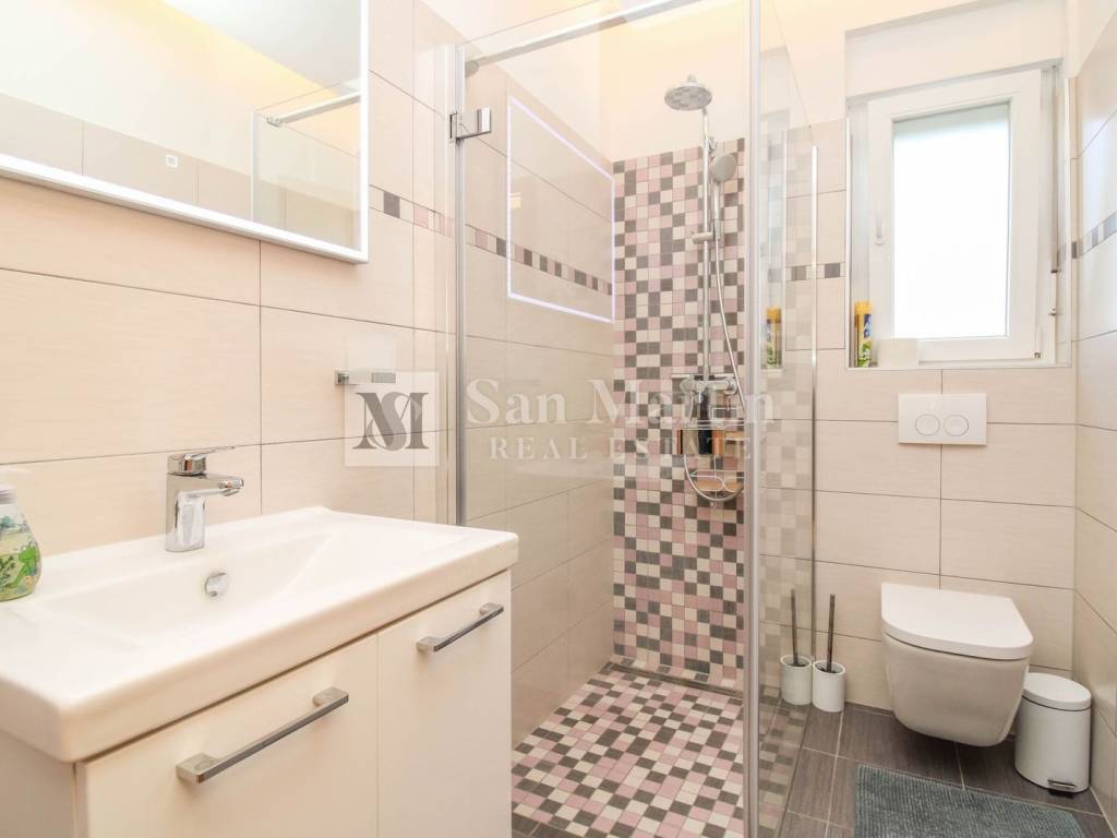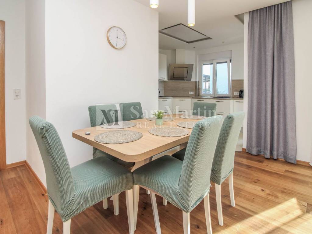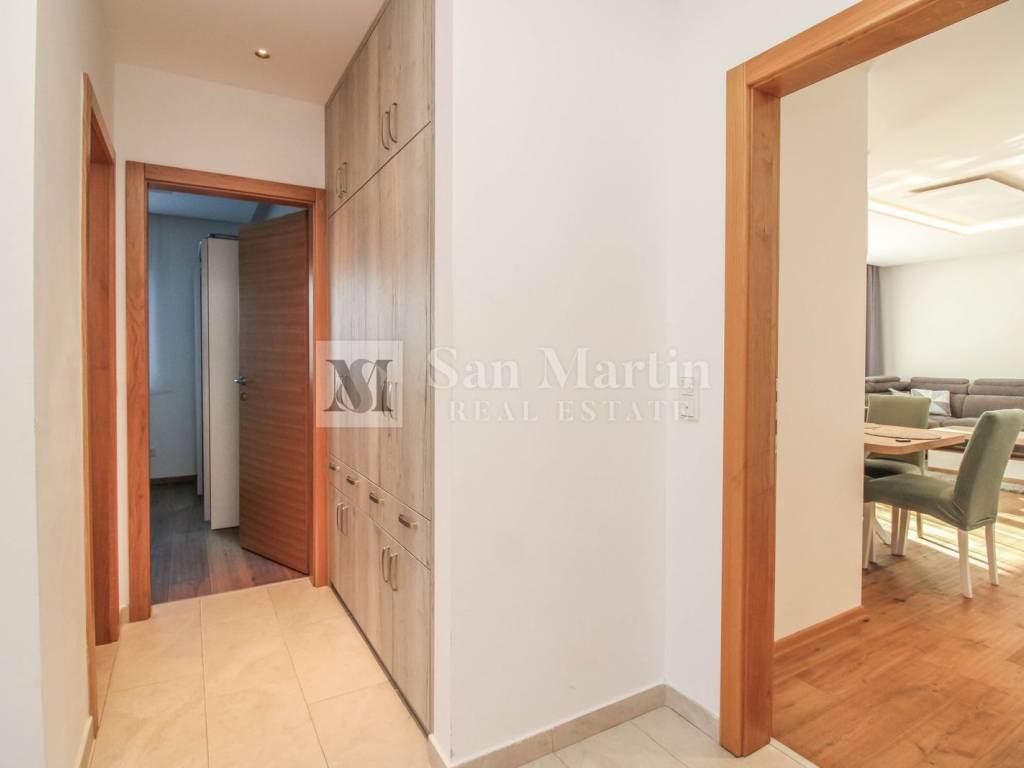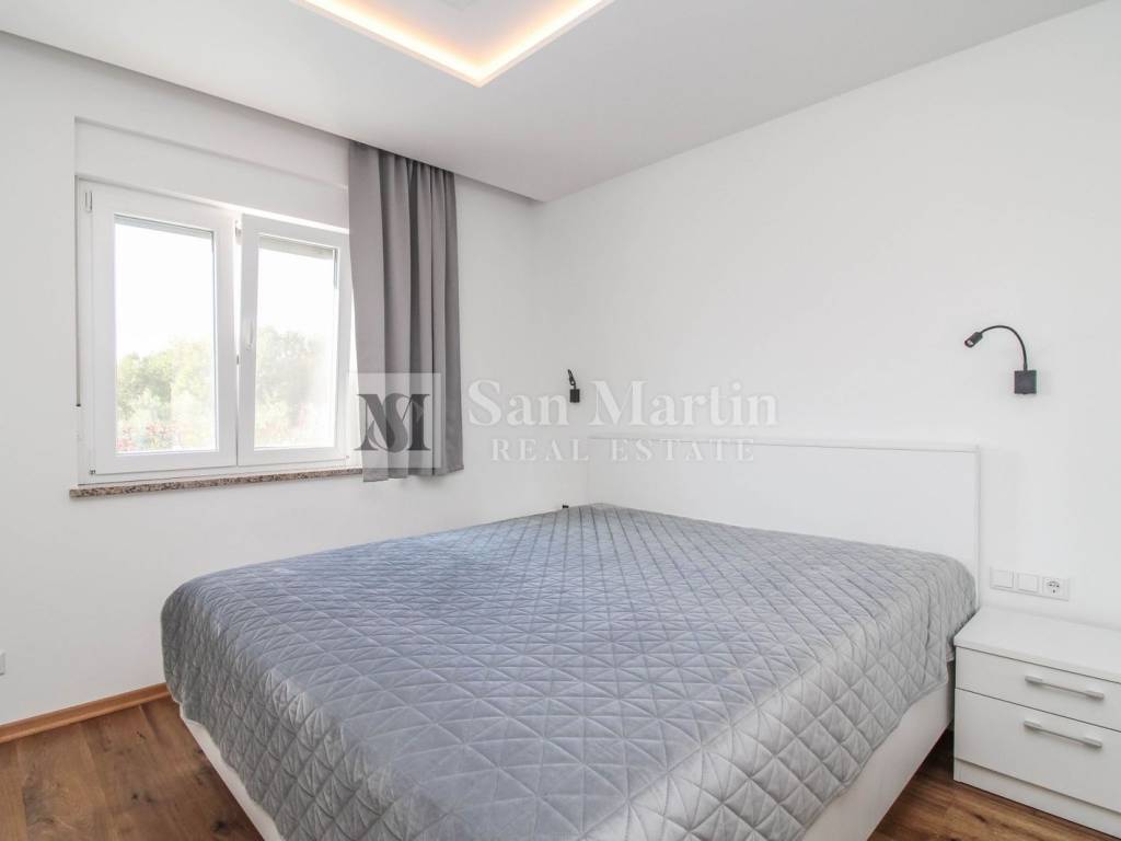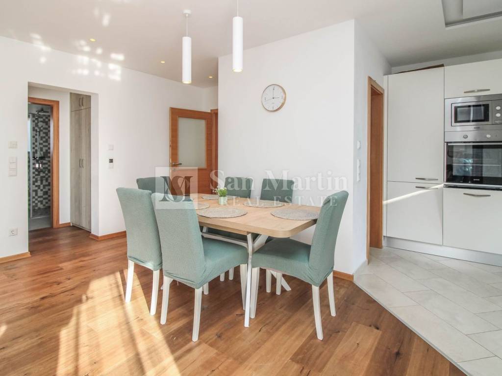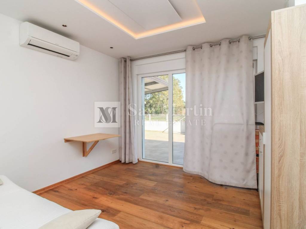POREČ, ISTRA Predivna prizemnica s bazenom u mirnom okruženju Na svega 4 kilometra od centra Poreča i 2 kilometra od mora, u mirnom i uređenom naselju na kraju slijepe ulice, nalazi se ova moderna prizemnica koja pruža potpunu privatnost i udobnost. Kuća ima 100 m² stambene površine, smještene na parceli od 500 m² s prekrasnim bazenom, uređenim dvorištem i tri natkrivena parkirna mjesta s električnom kapijom. Jedno parkirno mjesto opremljeno je i punjačem za električne automobile. Unutrašnjost je pažljivo osmišljena kako bi pružila maksimalnu funkcionalnost i udobnost. Sastoji se od tri prostrane spavaće sobe, tri moderno uređene kupaonice, svijetlog dnevnog boravka s blagovaonicom, kuhinje s ostavom, ulaznog hodnika, tavana te prostrane južne terase idealne za odmor i druženje. Zahvaljujući stropnim grijalicama i klima uređajima, boravak u kući ugodan je tijekom cijele godine. Dvorište nudi sve što je potrebno za bezbrižno uživanje — bazen, roštilj zonu i dovoljno prostora za sunčanje i opuštanje. Nekretnina se prodaje potpuno namještena i opremljena, spremna za useljenje bez dodatnih ulaganja. Sva je dokumentacija uredna, a energetski certifikat oznake B jamči dobru energetsku učinkovitost. Idealna kuća za miran obiteljski život ili kao investicija za turistički najam u jednom od najtraženijih dijelova Istre. ID KOD AGENCIJE: 1026 San Martin nekretnine Mob: 00385 91 556 2470 Tel: +385 91 556 2470 E-mail: toni@sanmartin-realestate.com www.sanmartin-realestate.com