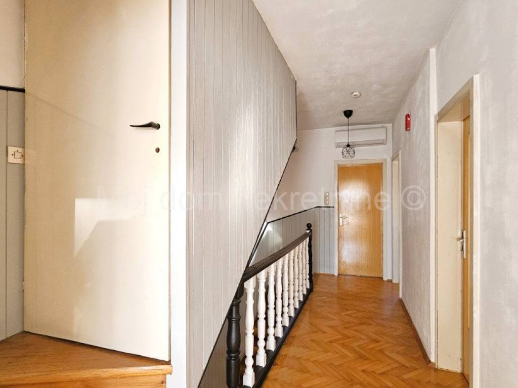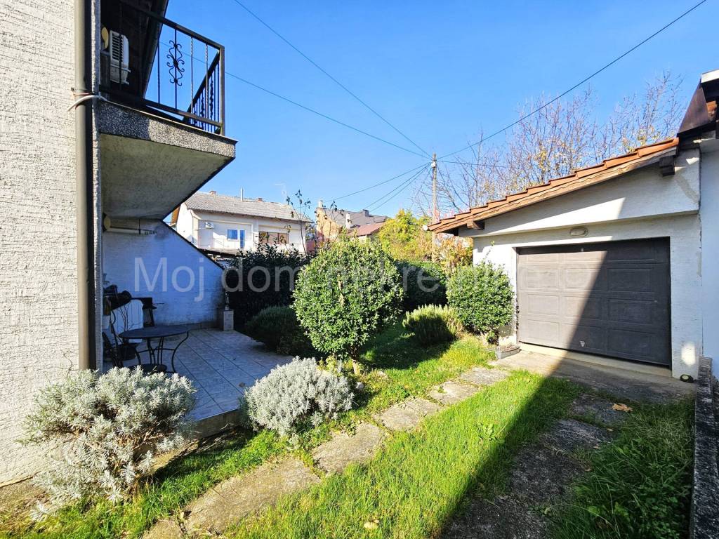 Prodaje se dvojna kuća s okućnicom i garažom. Proteže se na tri etaže (prizemlje, 1.kat, potkrovlje), stambene površine od 108.81m2, s potkrovljem podne površine cca 50m2. Potkrovlje je moguće urediti kao dodatan spavaći prostor (dvije spavaće sobe). Površina okućnice iznosi 168m2, na kojoj se nalazi garaža i parking za 3 automobila.