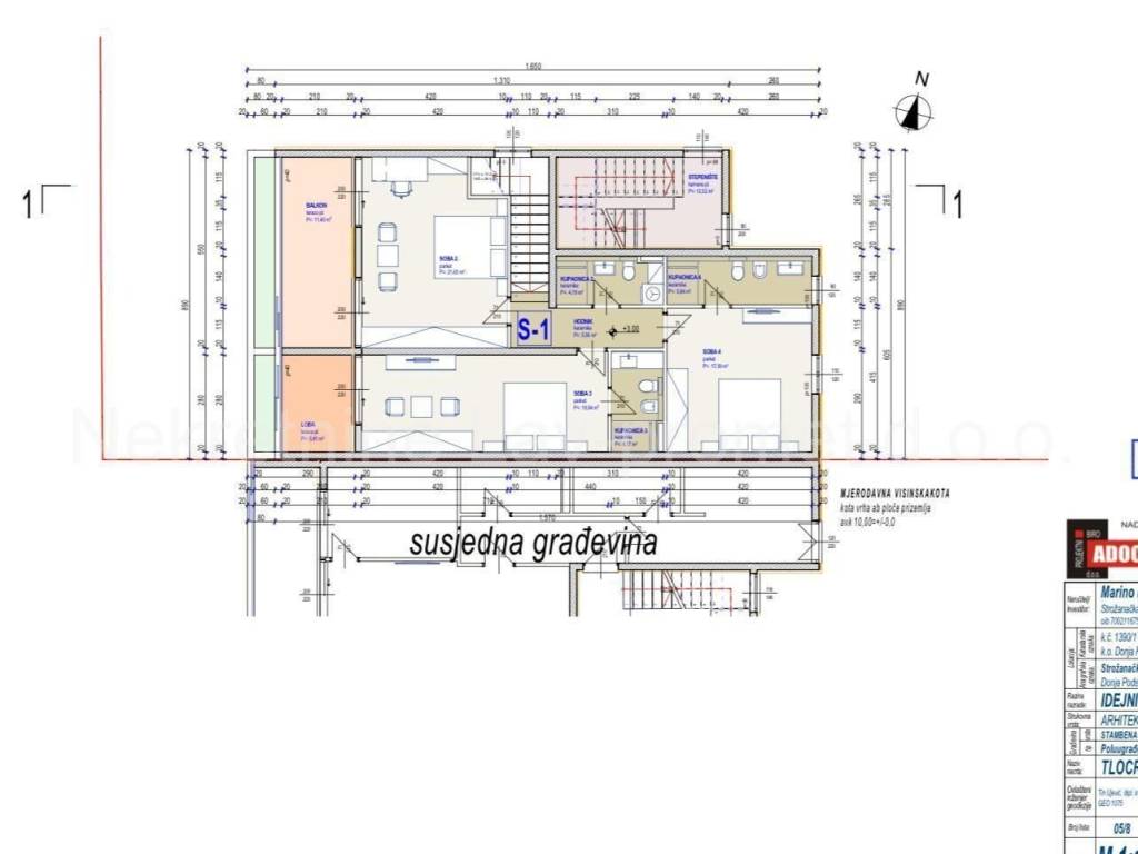 Na prvom katu i obuhvaća tri spavaće sobe, svaka s vlastitom kupaonicom i lođom, osiguravajući privatnost i funkcionalnost. Svaka prostorija na ovoj etaži pruža pogled na more, čineći interijer svijetlim i otvorenim.