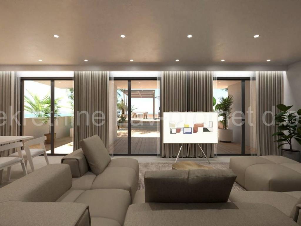 U Podstrani, u prvom redu do mora, nalazi se luksuzan trosoban komforan stan, od cca 100m2 koji svojim položajem, rasporedom i sadržajem pruža vrhunski doživljaj življenja u blizini mora. Smješten u ekskluzivnoj novogradnji.