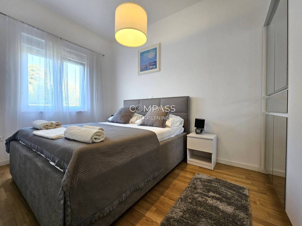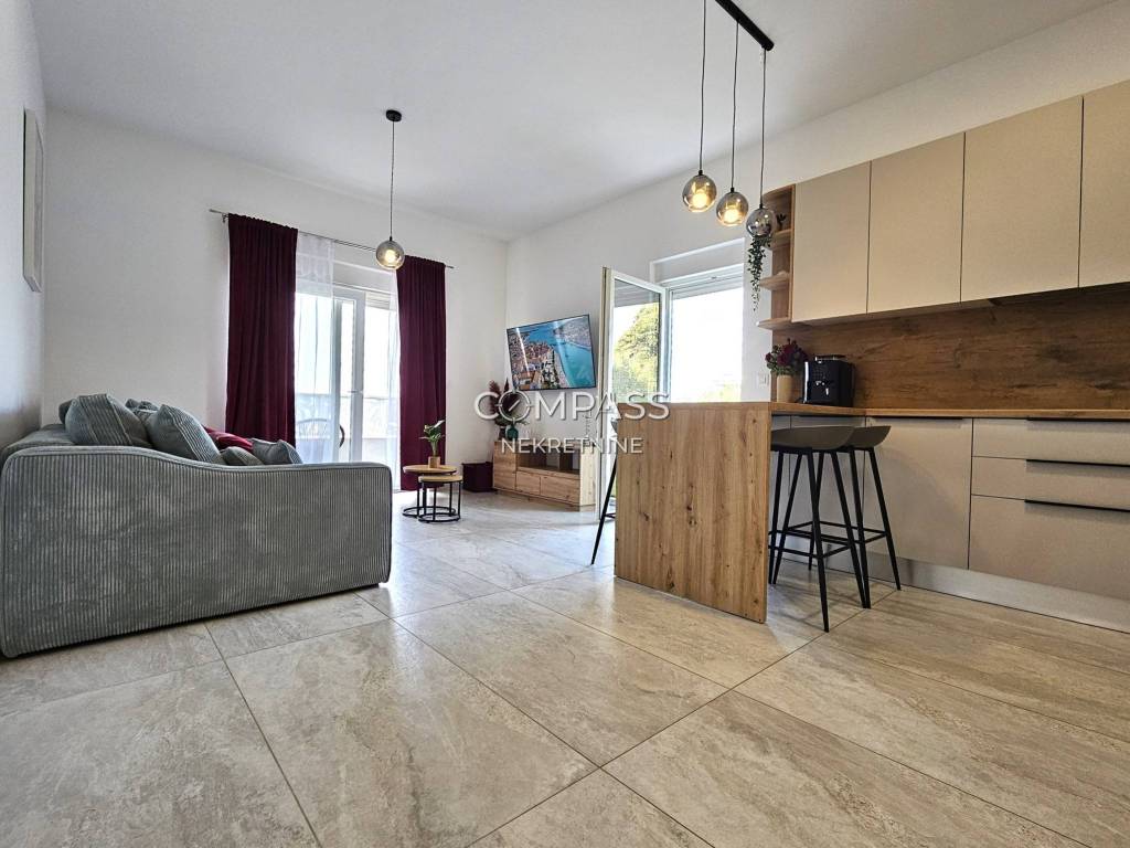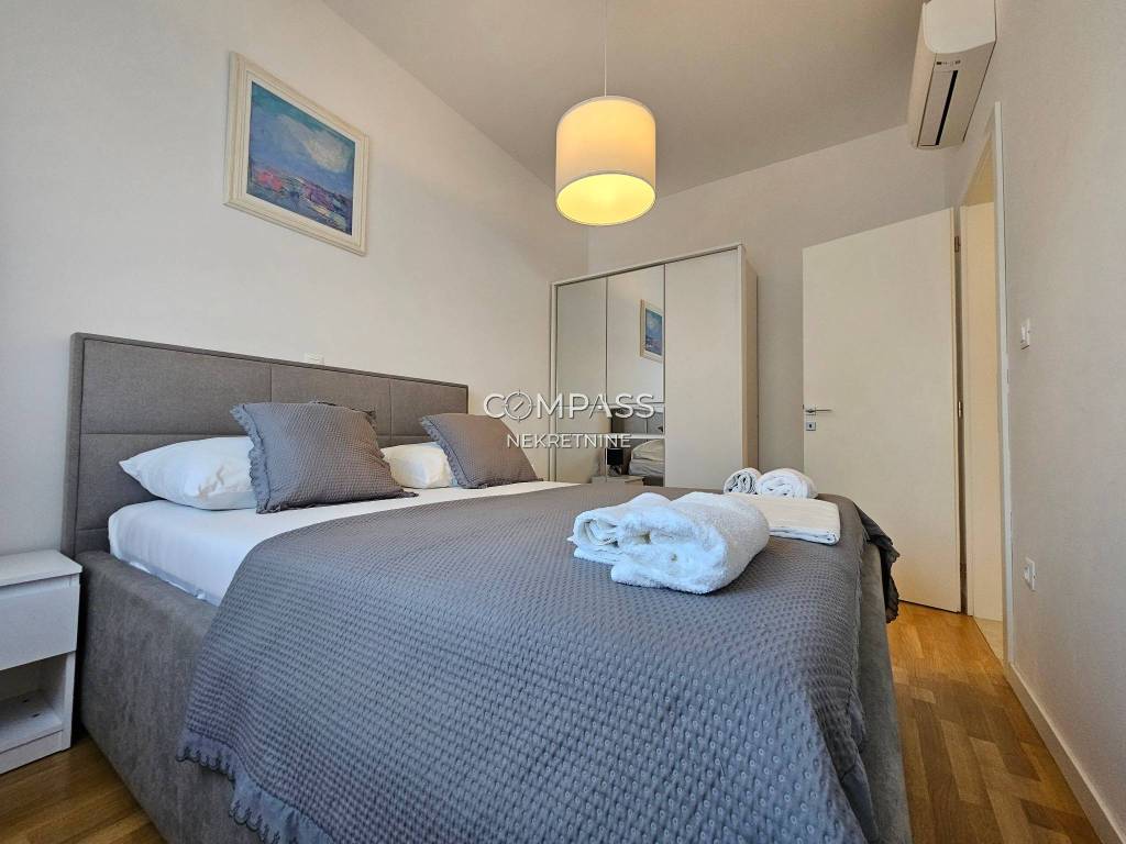 Stan je orijentiran prema jugozapadu, potpuno klimatiziran i opremljen modernim namještajem visoke kvalitete, spreman za useljenje bez dodatnih ulaganja.