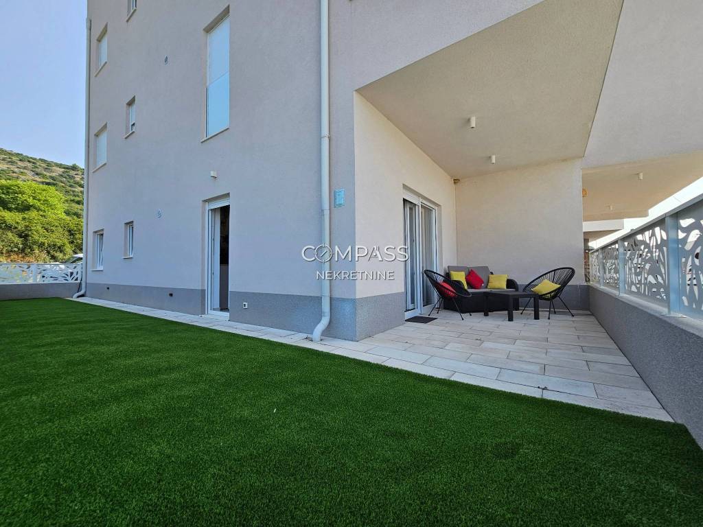 Posredujemo u ekskluzivnoj prodaji elegantnog jednosobnog stana smještenog u prizemlju prekrasne novogradnje u mirnom dijelu Trogira.