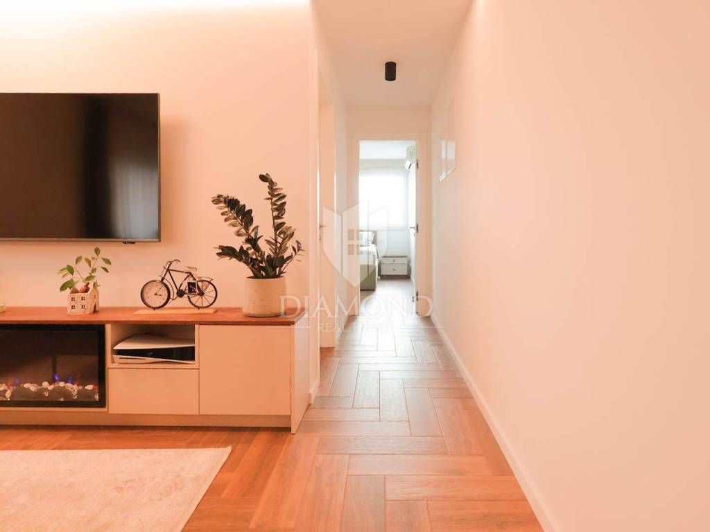 Stan se sastoji od dva hodnika, prozračne kupaonice, dvije ugodne spavaće sobe te prostranog dnevnog boravka povezanog s kuhinjom i blagovaonicom u otvorenom konceptu, stvarajući tako savršeno mjesto za zajednička druženja ili mirne večeri kod kuće.