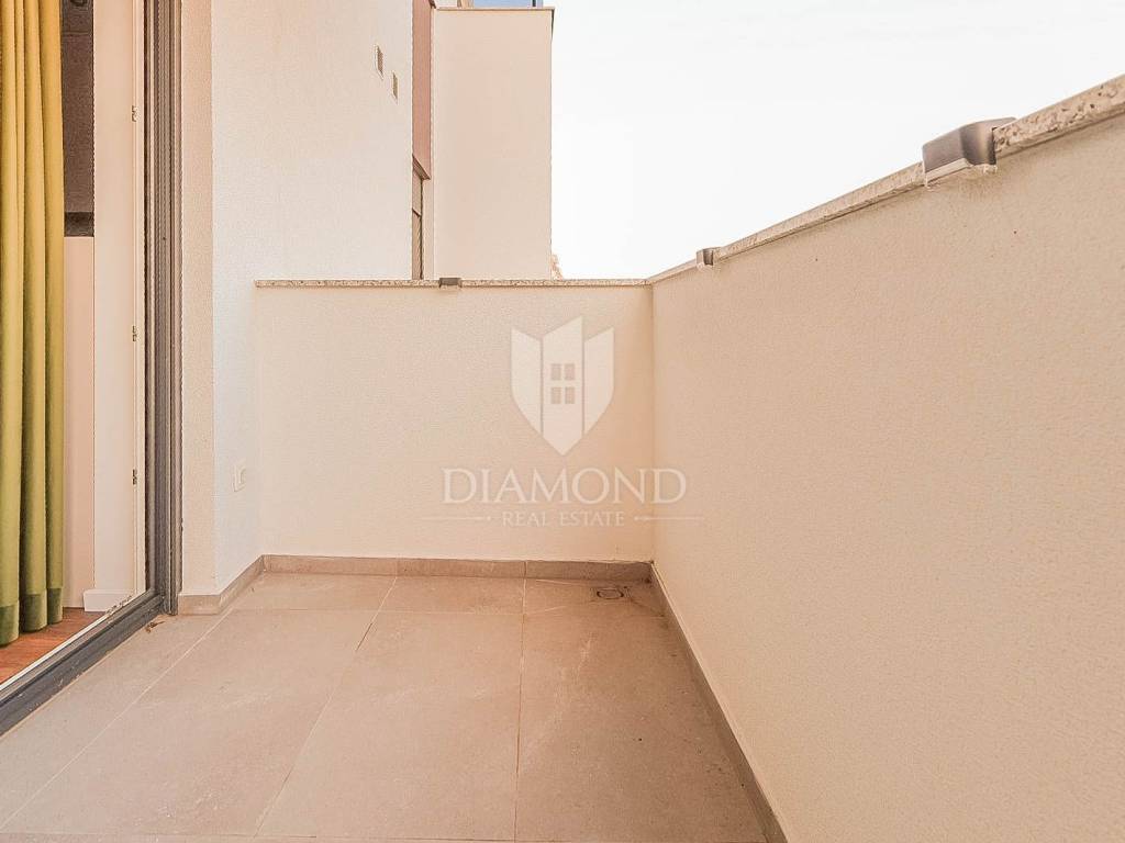 Iz dnevnog dijela izlazi se na natkriveni balkon površine 4,47 m² – taman dovoljno da ujutro uz kavu udahnete miran ritam kvarta ili se navečer opustite uz zalazak sunca.
