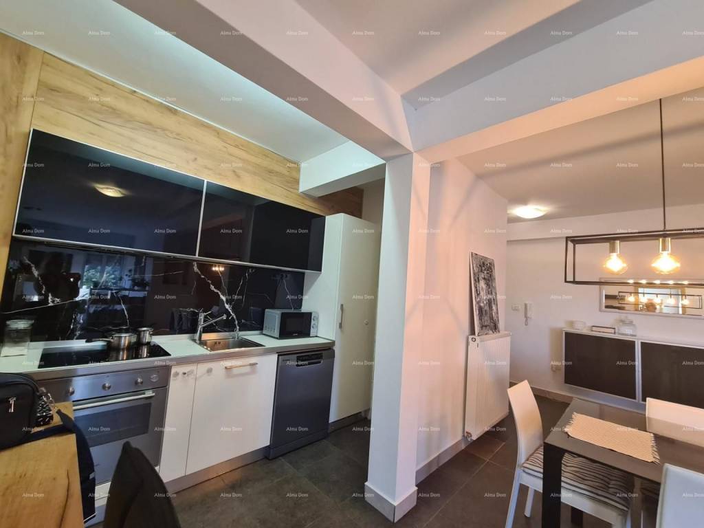 Na drugom (ujedno i zadnjem) katu mirne zgrade u Ližnjanu nalazi se ovaj izuzetno funkcionalan i moderno uređen stan, spreman za useljenje odmah. Smješten u šarmantnom istarskom naselju nadomak Pule i kristalno čistih plaža, idealan je kako za obiteljski život, tako i za turističku investiciju.Ključne značajke stana: Prostranost i kvaliteta87,48 m² stambenog prostora – izdašan raspored idealan za obitelj ili najamDvije spavaće sobePotpuno namješten, s ručno izrađenim namještajem visoke kvaliteteKeramičke pločice kroz cijeli stan – lako održavanje i moderan izgledPogled i svjetlostBalkon koji se proteže na obje strane stanaPogled na moreOrijentacija istok-jug – obilje prirodnog svjetla tijekom cijelog danaVeliki prozori, aluminijska stolarija s roletnamaModerna rasvjeta u cijelom stanu Funkcionalni sadržaji:Otvoreni dnevni boravak s kuhinjom – savršen za druženjaUgrađena smočnica – dodatni prostor za pohranuKupaonica s dva umivaonika, tuš kadom i prozoromKlima uređaj + centralno grijanje na struju – komfor tijekom cijele godine.Zgrada i okruženje:Mirna, održavana zgrada s demit fasadomProstrano stubište – jednostavan pristupZajednička ostava za bicikleOsigurano parkirno mjesto, unutar ograđenog prostora s rampomLokacija:Ližnjan je autentično istarsko mjesto s odličnom prometnom povezanošću, udaljeno svega nekoliko minuta od Pule i predivnih plaža. Idealna destinacija za opušten život ili isplativo turističko iznajmljivanje.Stan je useljiv odmah – bez dodatnih ulaganja!Za dodatne informacije, molimo kontaktirajte:Azra+385 91 611 5706+385 98 420 885azra@almadominvest.com