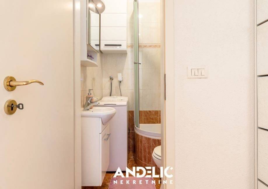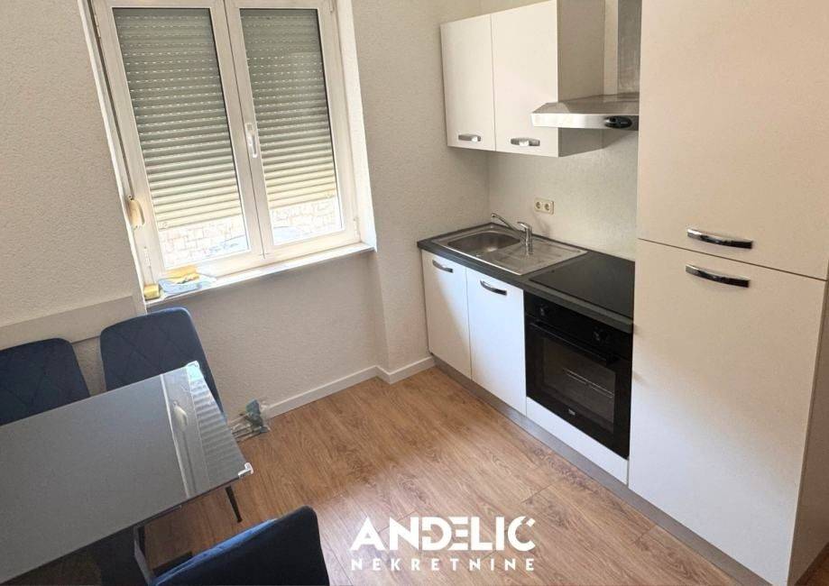 Osunčan stan na prvom katu manje stambene zgrade. Sastoji se od spavaće sobe, kuhinje s blagovaonicom i dnevnom boravka, kupaonice, ukupne površine 30 M2.