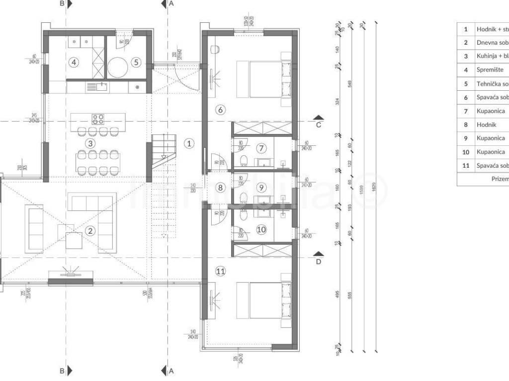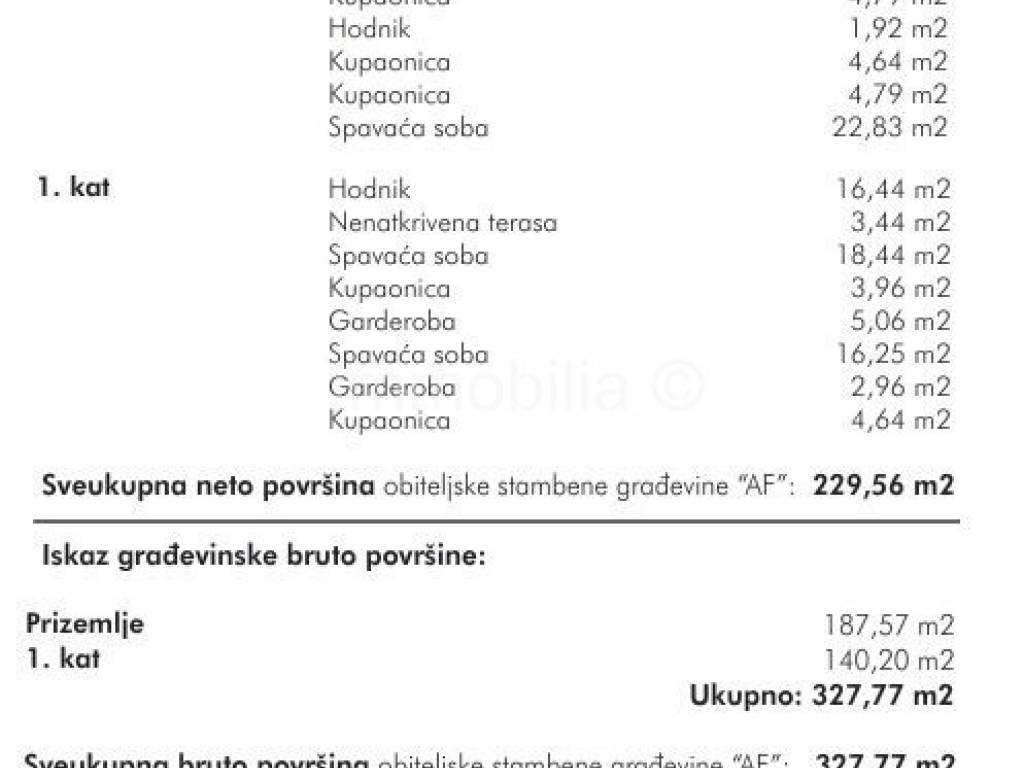 Vila P+1, neto stambenog prostora 229 m2 , 4 spavaće sobe, 5 kupaonica , bazen 32 m2, 3 parkirna mjesta unutar parcele ..