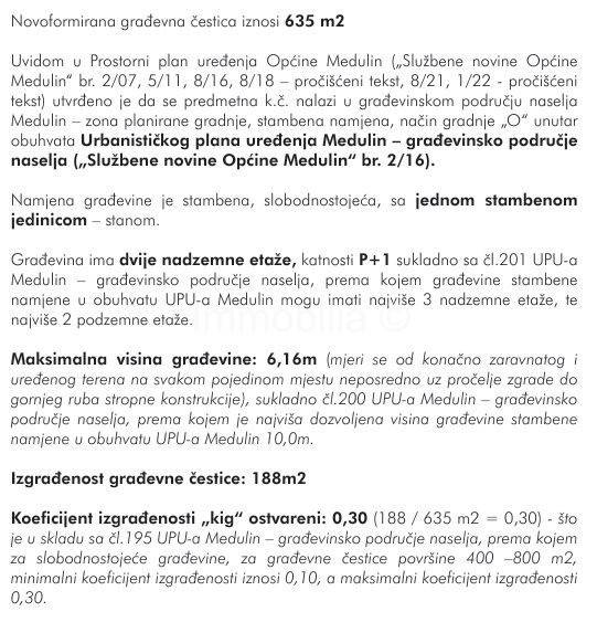 Nudimo odlično građevinsko stambeno zemljište veličine 635 m2 na mirnoj lokaciji u Medulinu.
