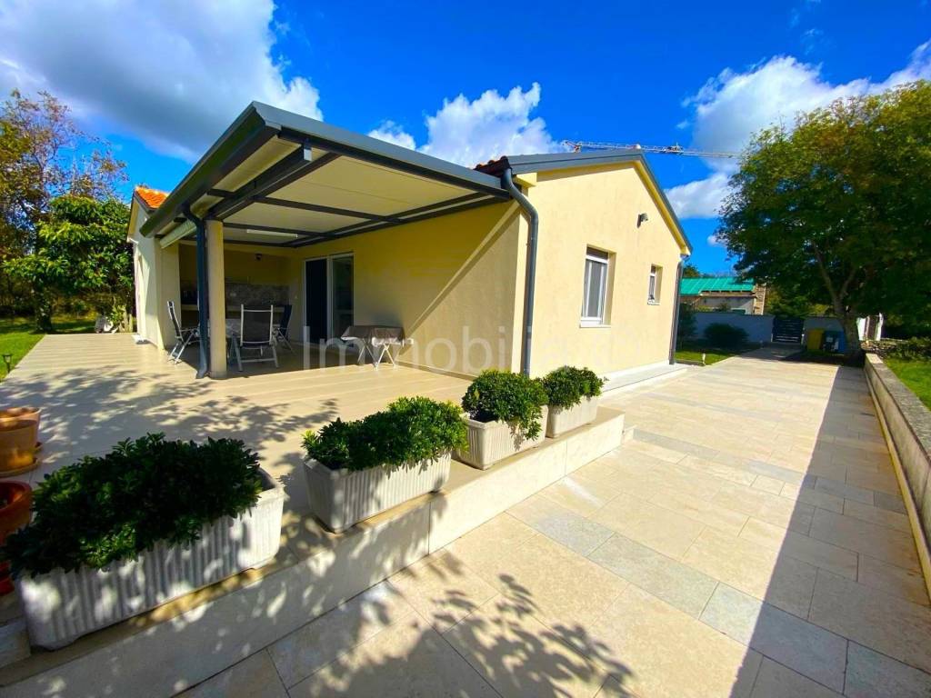 Prodaje se nova kuća prizemnica, površine 93 m2, koja se nalazi u blizini Kanfanara i sastoji se od hodnika, spavaće sobe s kupaonicom, još jedne spavaće sobe, kuhinje, špajze, blagovaonice, dnevnog boravka, još jedne kupaonice, natkrivene terase i spremišta koje ima zasebni ulaz.