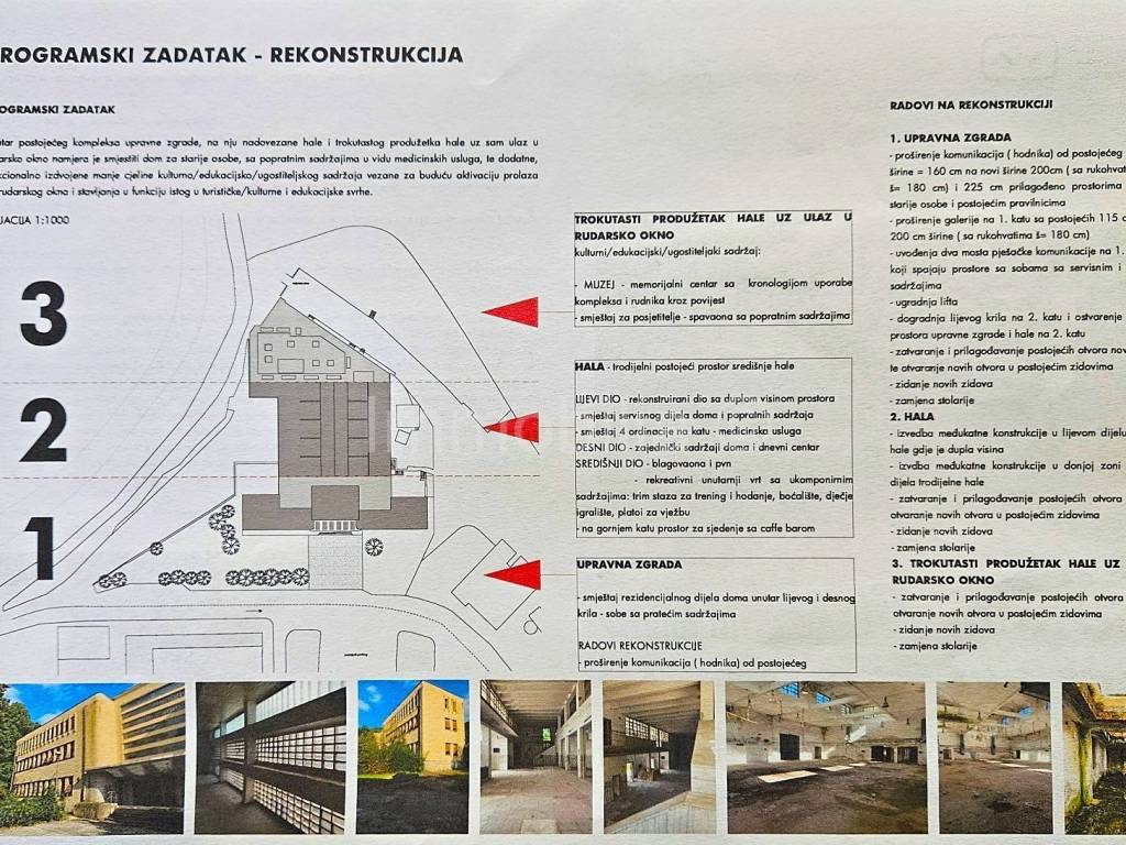 Nudimo poslovni kompleks u centru Raše sa idejnim projektom za dom za starije osobe sapratećim sadržajima.