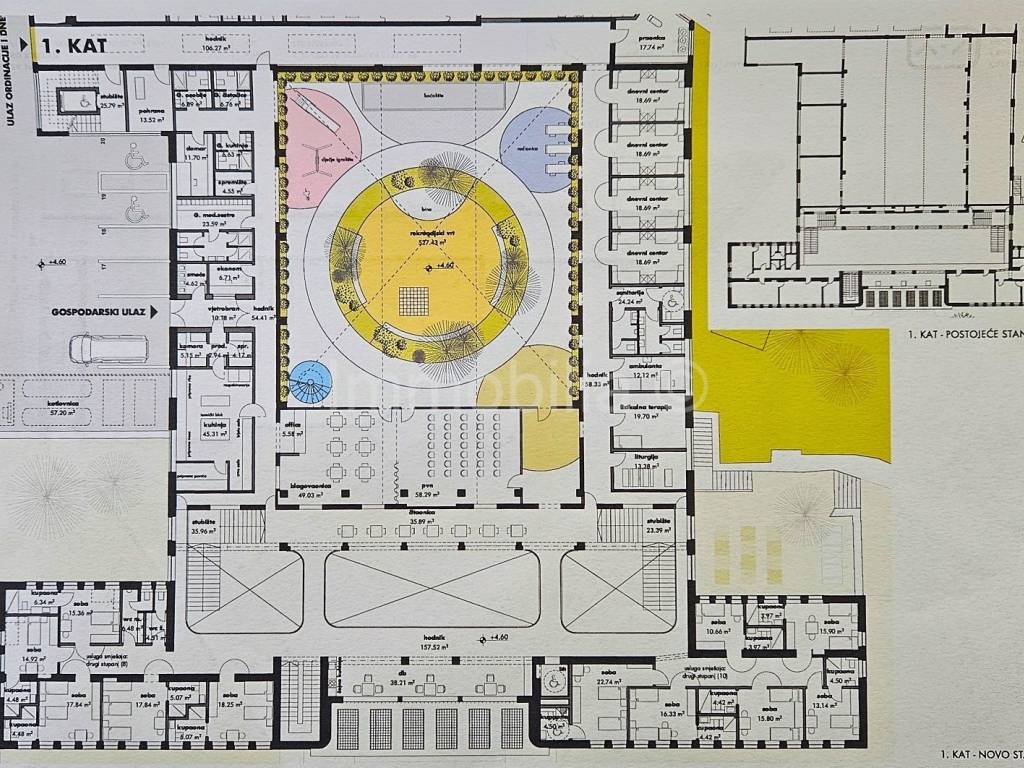 Stambena površina budućeg doma za starije osobe sa pratećim sadržajima iznosi oko 4.500 m2 na ukupno 7.000 m2 zemljišta.