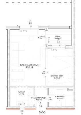 Stan S-0-3 smješten je u prizemlju i idealan je za one koji traže udoban i funkcionalan prostor s modernim dizajnom. Njegov pažljivo osmišljen raspored osigurava udobnost i praktičnost za svakodnevni život.