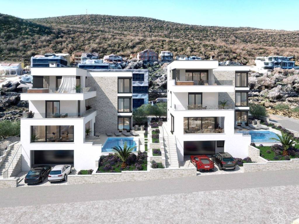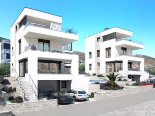 Vila Paklenica1 - podrum + prizemlje + 1. kat + 2. kat - stambena površina 260 m2 (4 spavaće sobe + 4 kupaonice) + 3 terase + bazen 28 m2 sa sunčalištem + vrt + garaža za 2 automobila, ukupna neto obračunska površina 342 m2 na parceli površine 470 m2 = 2.000.000 EUR (s uključenim PDV-om)