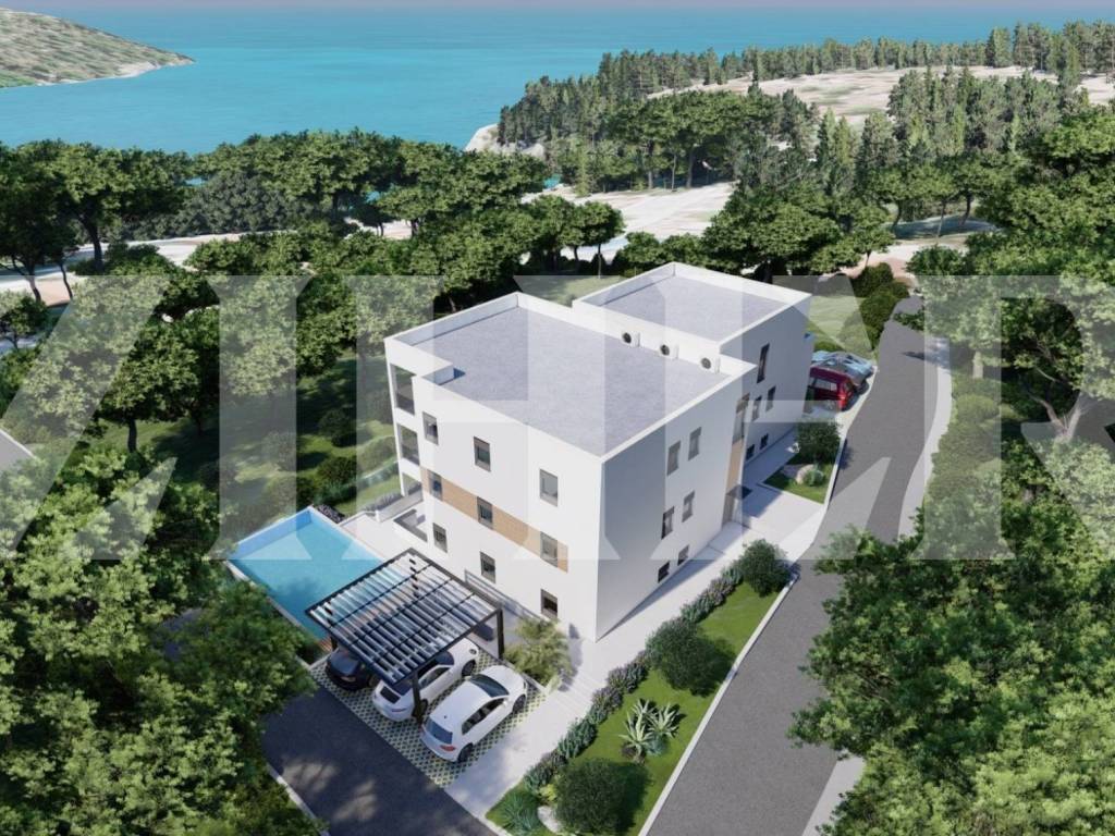 Prodaje se 6 luksuznih apartmana, dvojni objekt, svaki po 3 apartmana, koji se nalazi u prekrasnoj uvali 80 m od mora.