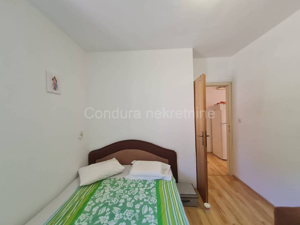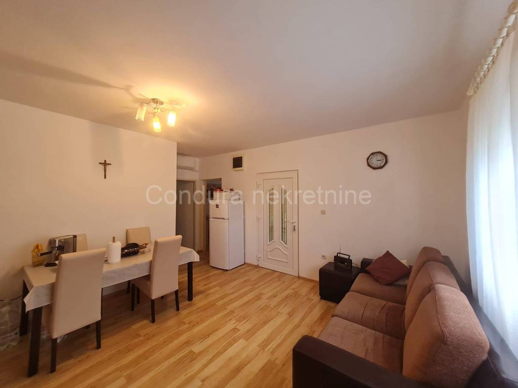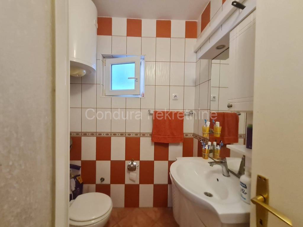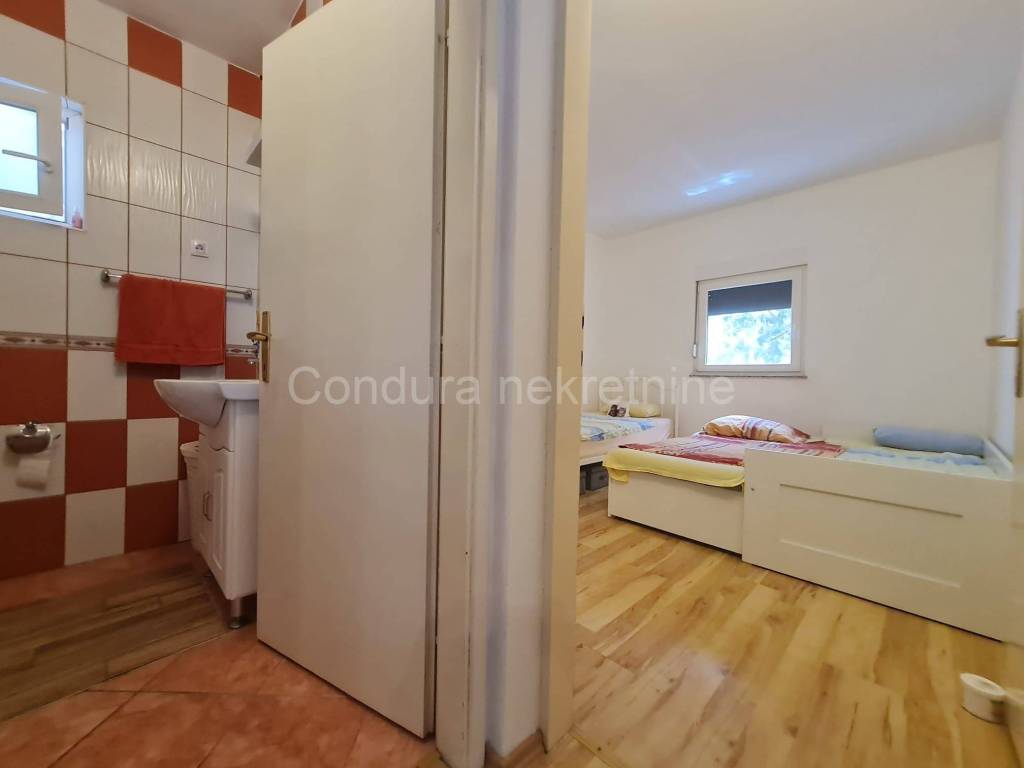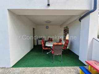 U prizemlju kuće se nalazi apartman koji se sastoji od dvije spavaće sobe, kupaonice, kuhinje s dnevnim boravkom i prostrane loggie (15,79 m2). Vanjskim stubištem se ide na gornju etažu gdje se nalazi velika ulazna terasa (15,79 m2) te prostor u visokom roh-bau površine 44 m2 koji je podjeljen u dvije prostorije.