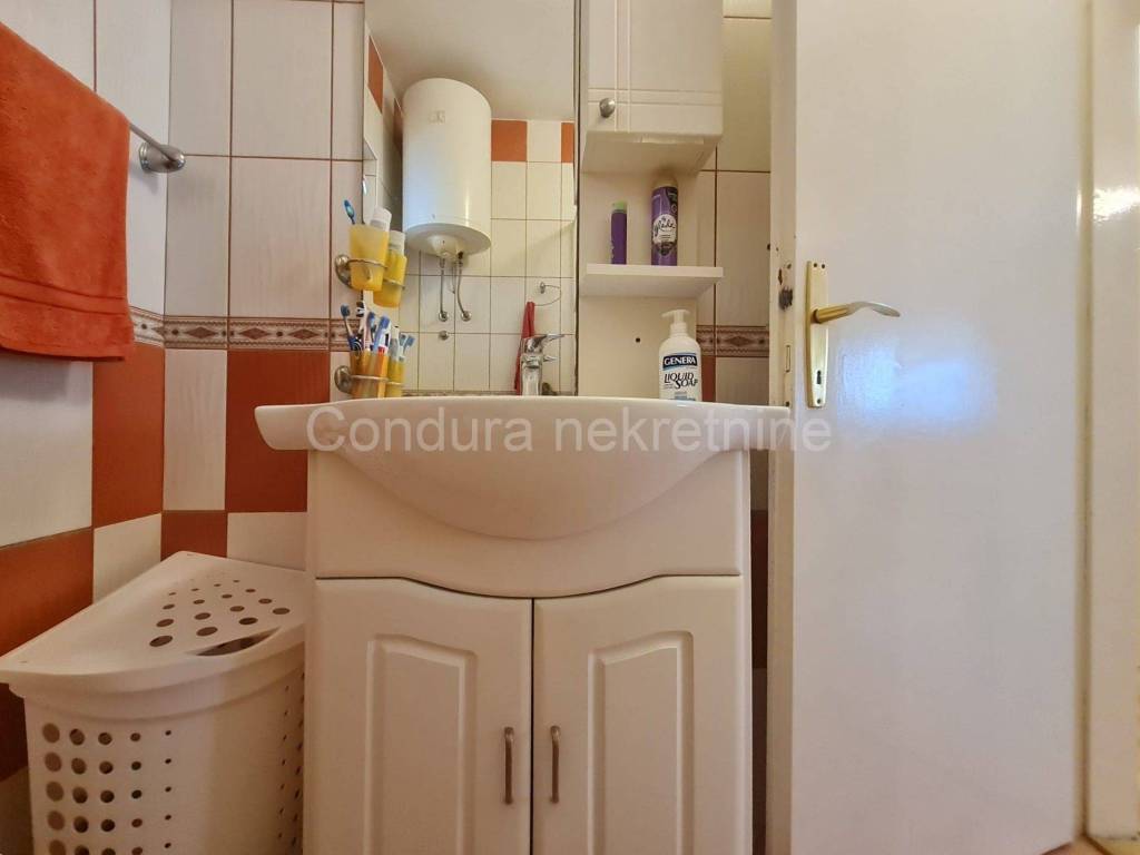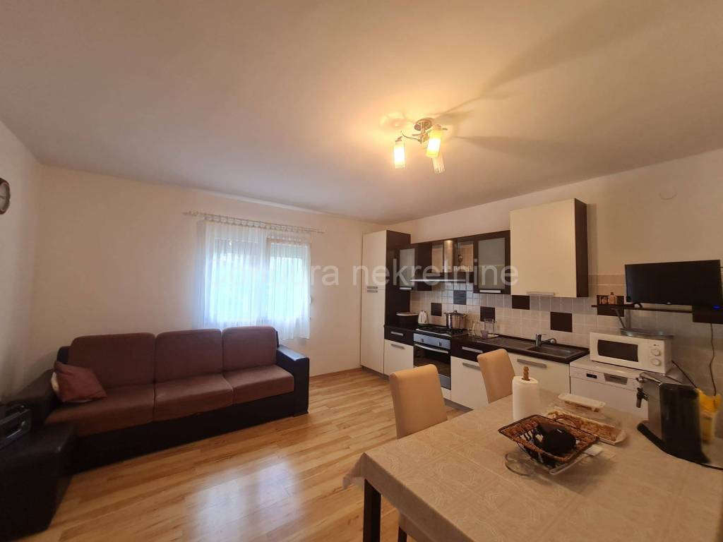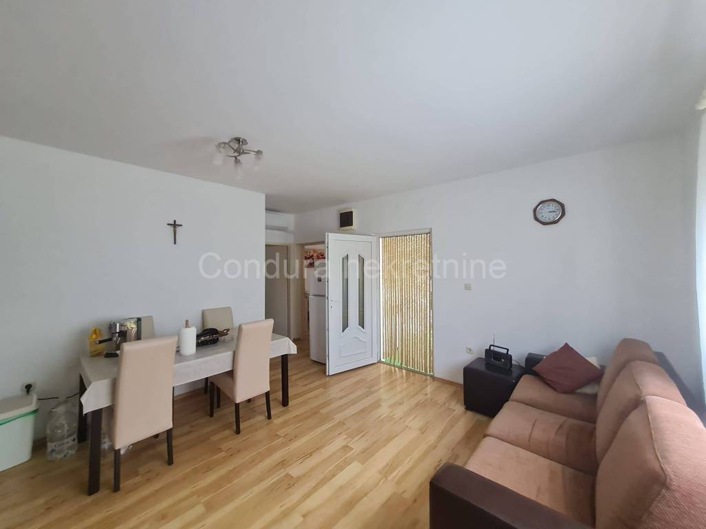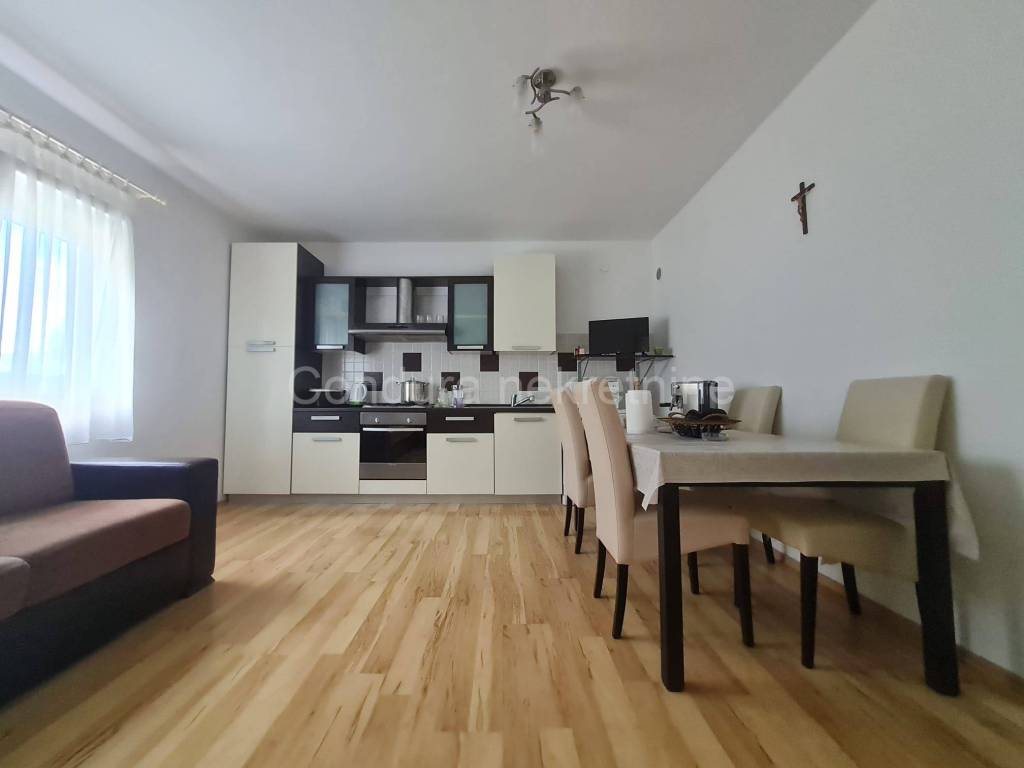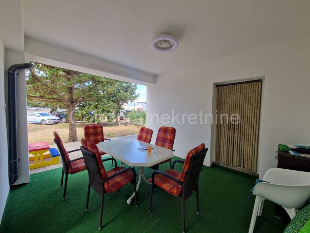 U prizemlju kuće se nalazi apartman koji se sastoji od dvije spavaće sobe, kupaonice, kuhinje s dnevnim boravkom i prostrane loggie (15,79 m2). Vanjskim stubištem se ide na gornju etažu gdje se nalazi velika ulazna terasa (15,79 m2) te prostor u visokom roh-bau površine 44 m2 koji je podjeljen u dvije prostorije.